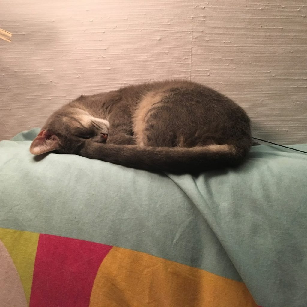 Le visite diventano facoltative quando si ha il gatto accanto. La presenza di Rosalie mi riempie di gioia e ogni volta che ci mostra che ci ama, mi dico che la felicità è così semplice. Rosalie ora sta facendo sua la casa, che considera sua. La casa è così grande che ha tante scelte: un giorno dormirà sul divano, un altro giorno su uno dei tanti cuscini a sua disposizione. In poche settimane, siamo riusciti a stabilire una routine: quando miagola in bagno, le riempio la ciotola d’acqua (la signora ama l’acqua molto fresca), e mi aspetta nella lavanderia se ha voglia di broda. Mi segue ovunque e guardiamo insieme le serie su Netflix/Canal+, Rosalie è spesso sulle mie gambe, dormendo/correndo