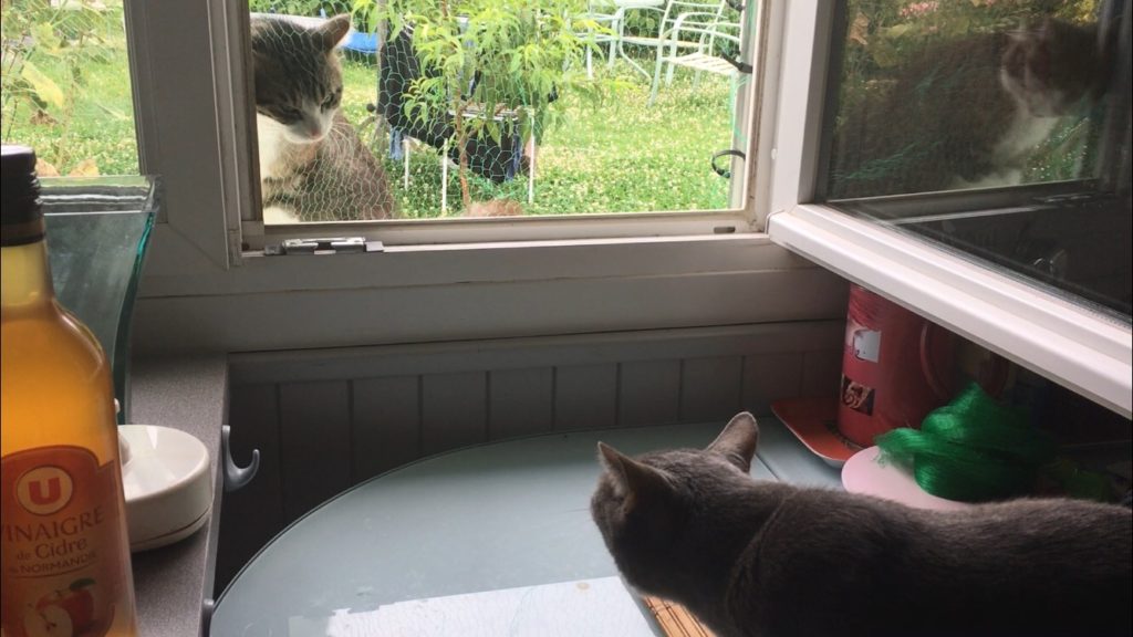 I due gatti hanno avuto qualche scontro, ma fortunatamente la finestra era abbastanza sicura, così che nessuno ha colpito nessuno