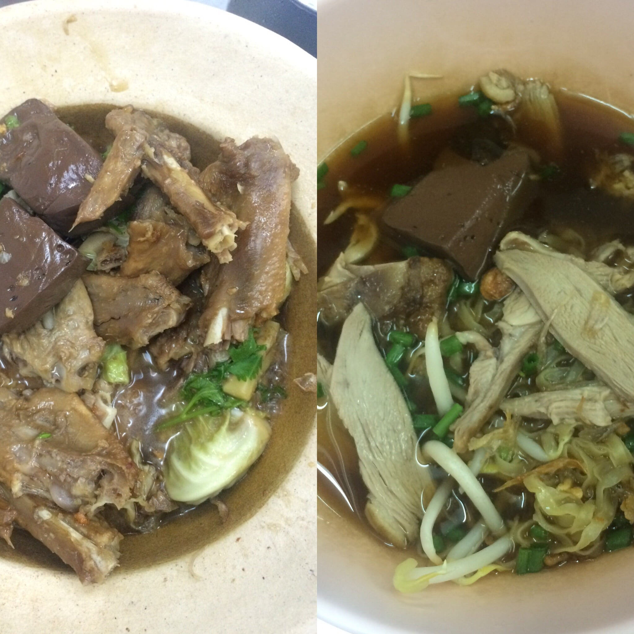 Noterete che mangio una zuppa di ali d’anatra (foto a sinistra). Queste parti ossee, molto disprezzate in Europa, hanno la costa in Asia. Il cubetto marroncino che vedete qui è sangue di maiale. Ma è molto buono.