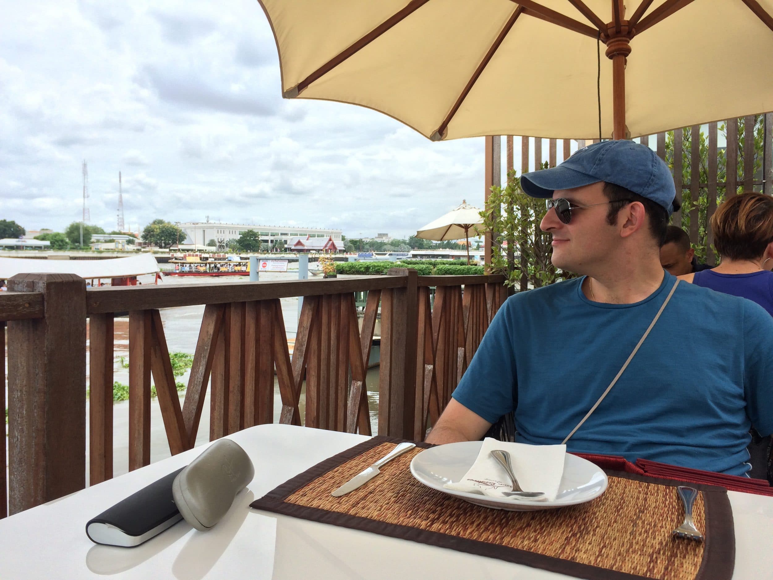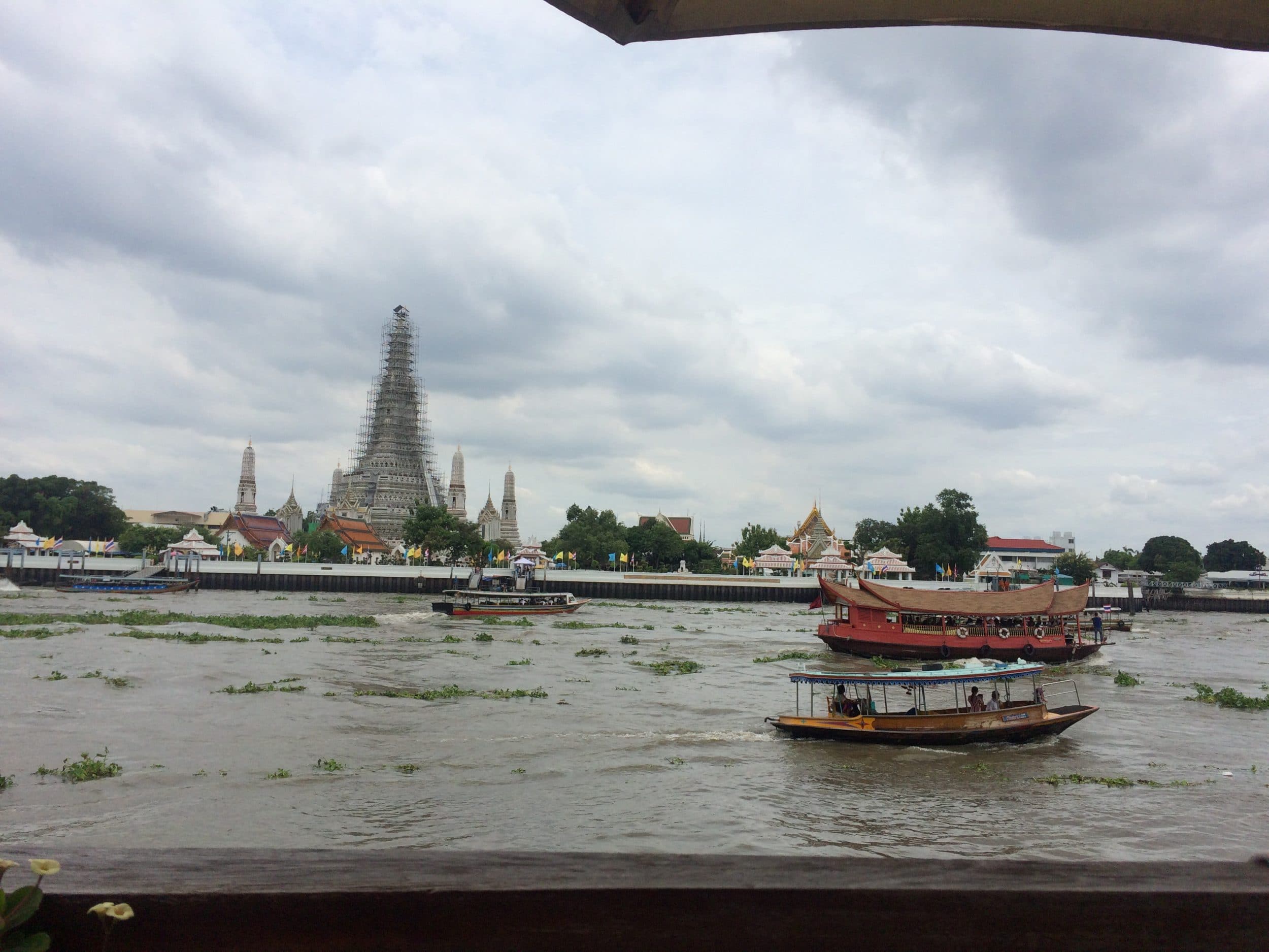 Dopo l’insalata di mango, facciamo un pranzo leggero in un hotel con vista sul Wat Arun che è in costruzione. La bella vista ci dispenserà da un giro in barca.