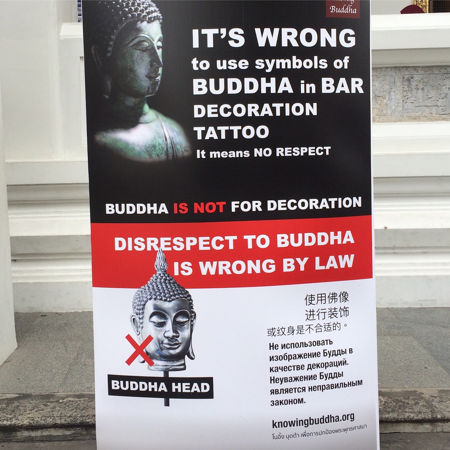 Si possono vedere questi manifesti ovunque, ma i Budda souvenir sono ancora in vendita.
