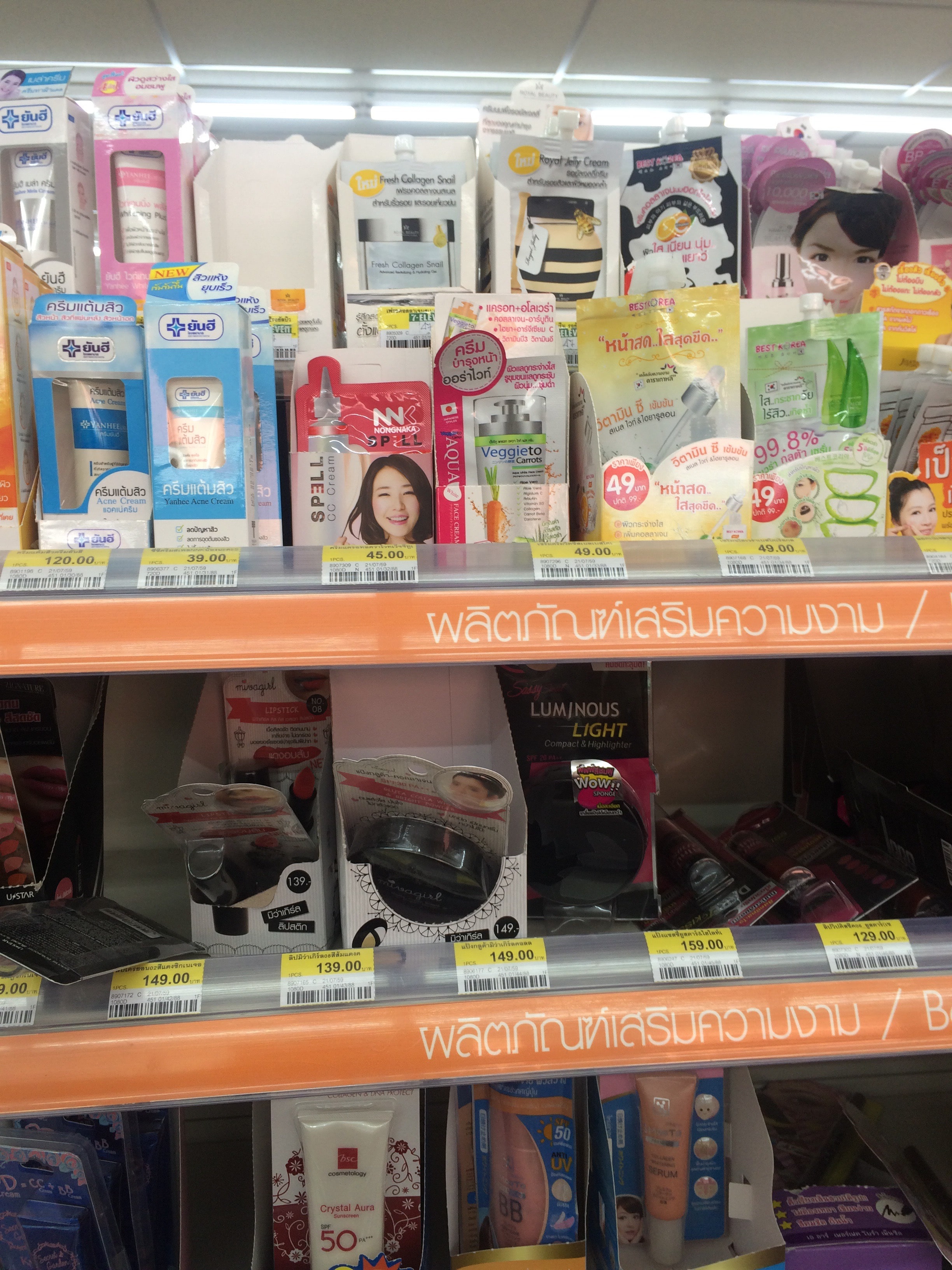 Al 7 eleven (il supermercato), trovo molte cose in formato miniatura o da viaggio. Chiunque viaggi in Asia sa che gli shampoo di piccolo formato (1ml) sono in vendita ovunque. Ebbene, in Thailandia, le miniature non si applicano solo agli shampoo ma anche alla cura dei capelli, alla crema idratante, alla protezione solare..