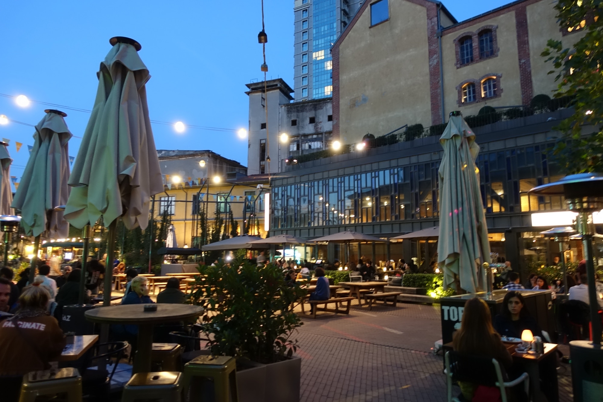 Insieme ad altri nomadi digitali, incontriamo Y., che è turco e amico di un amico nomade incrociato in Giappone. Y. ci porta a vedere gli angoli del quartiere, dove vive da più di 15 anni. Gli piace molto il quartiere di Şişli, che è molto più centrale e orientato agli affari per lui. Gli piace il fatto di essere vicino a una metropolitana, perché nonostante un’eccellente rete di autobus, il traffico di Istanbul è tale che si rimane molto rapidamente intrappolati negli ingorghi. Gli chiediamo dove va a bere qualcosa con i suoi amici, e lui ci porta a Bomontiada, uno spazio aperto molto molto bello dove ci sono molti caffè e ristoranti. Di tanto in tanto, ci sono concerti (gratuiti), è anche uno spazio culturale, con mostre, laboratori… Le bevande costano un po’ di più qui, così ci ha raccomandato di venire con le nostre bevande e di sederci sulle scale per ascoltare i concerti