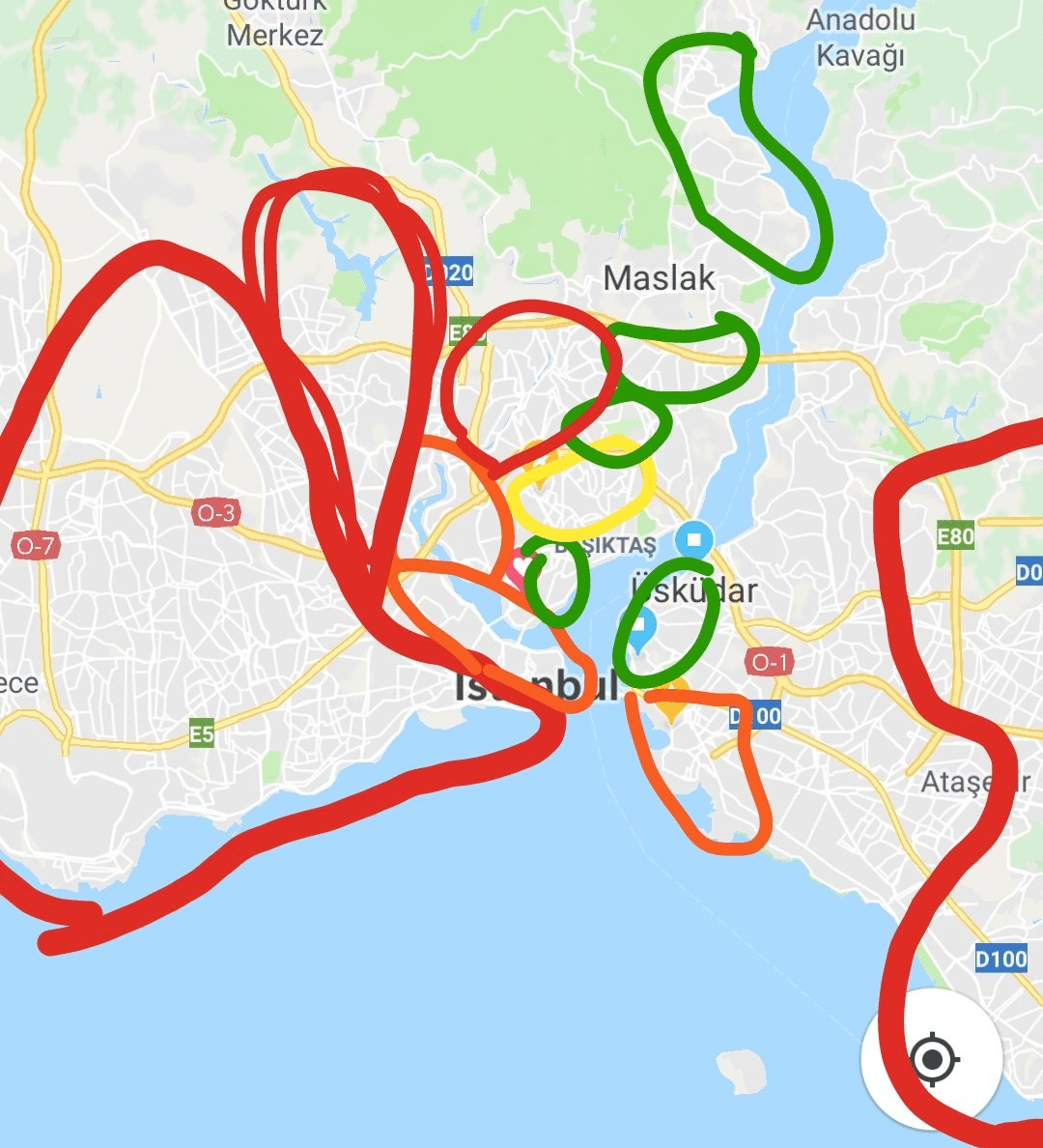So che ha cerchiato Sisli in giallo, ma ancora una volta, se puoi, evita questa zona o stai vicino a una linea della metropolitana