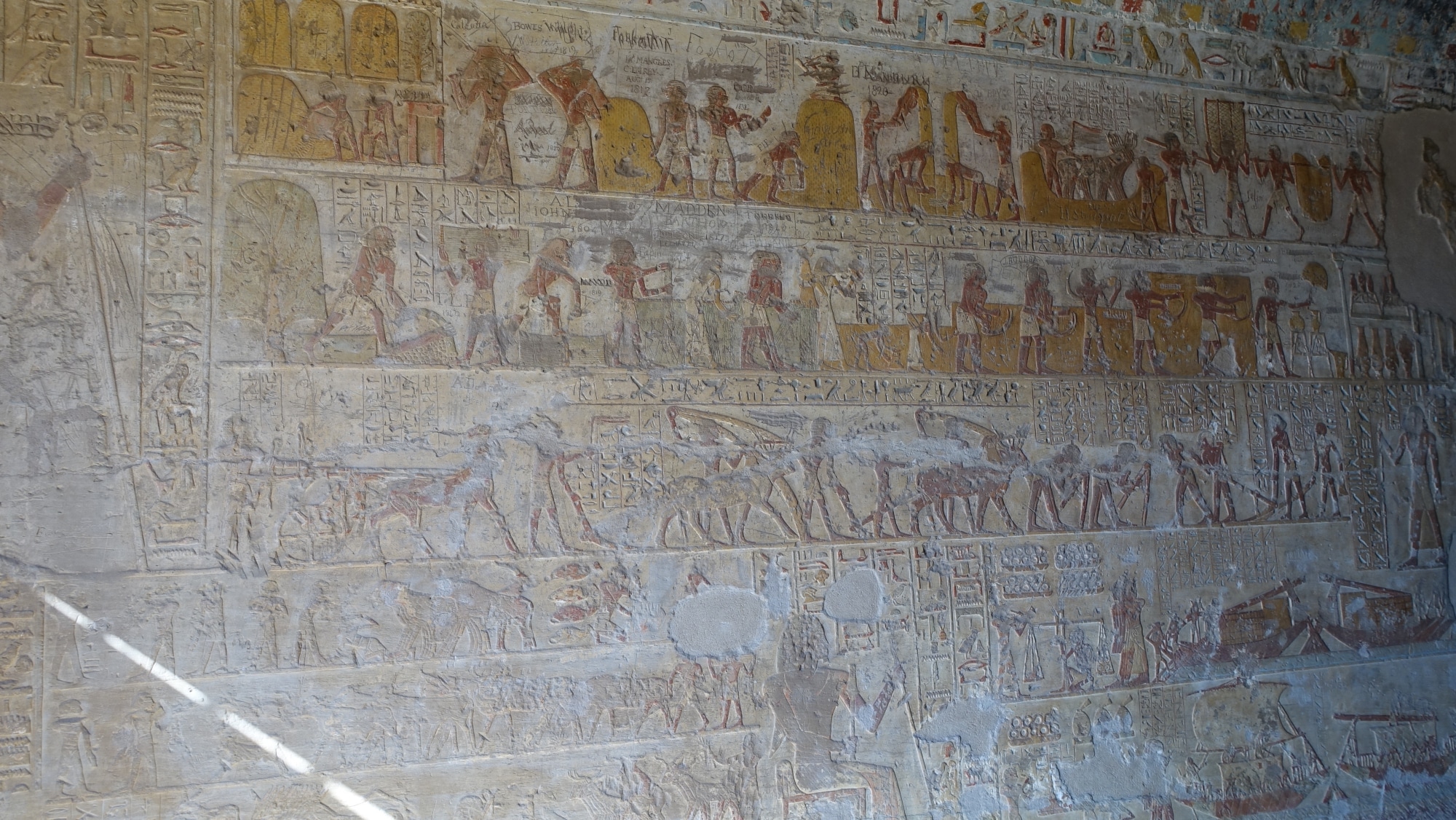 Di conseguenza, le scene e i geroglifici sono diversi, ci sono scene di vita quotidiana, come il raccolto, il lavoro della terra..