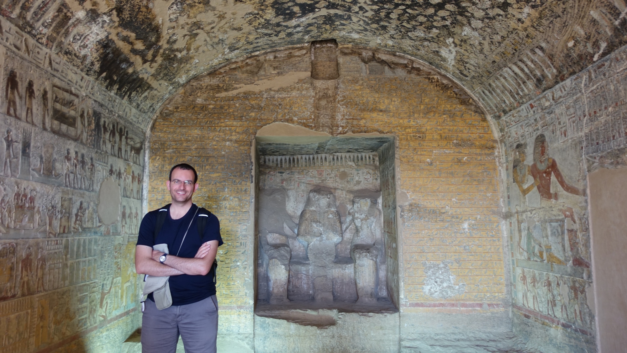 Questo è l’interno di una tomba. È molto diverso dalle tombe reali che vediamo a Luxor. Qui visitiamo le tre tombe di ex sacerdoti/governatori della città