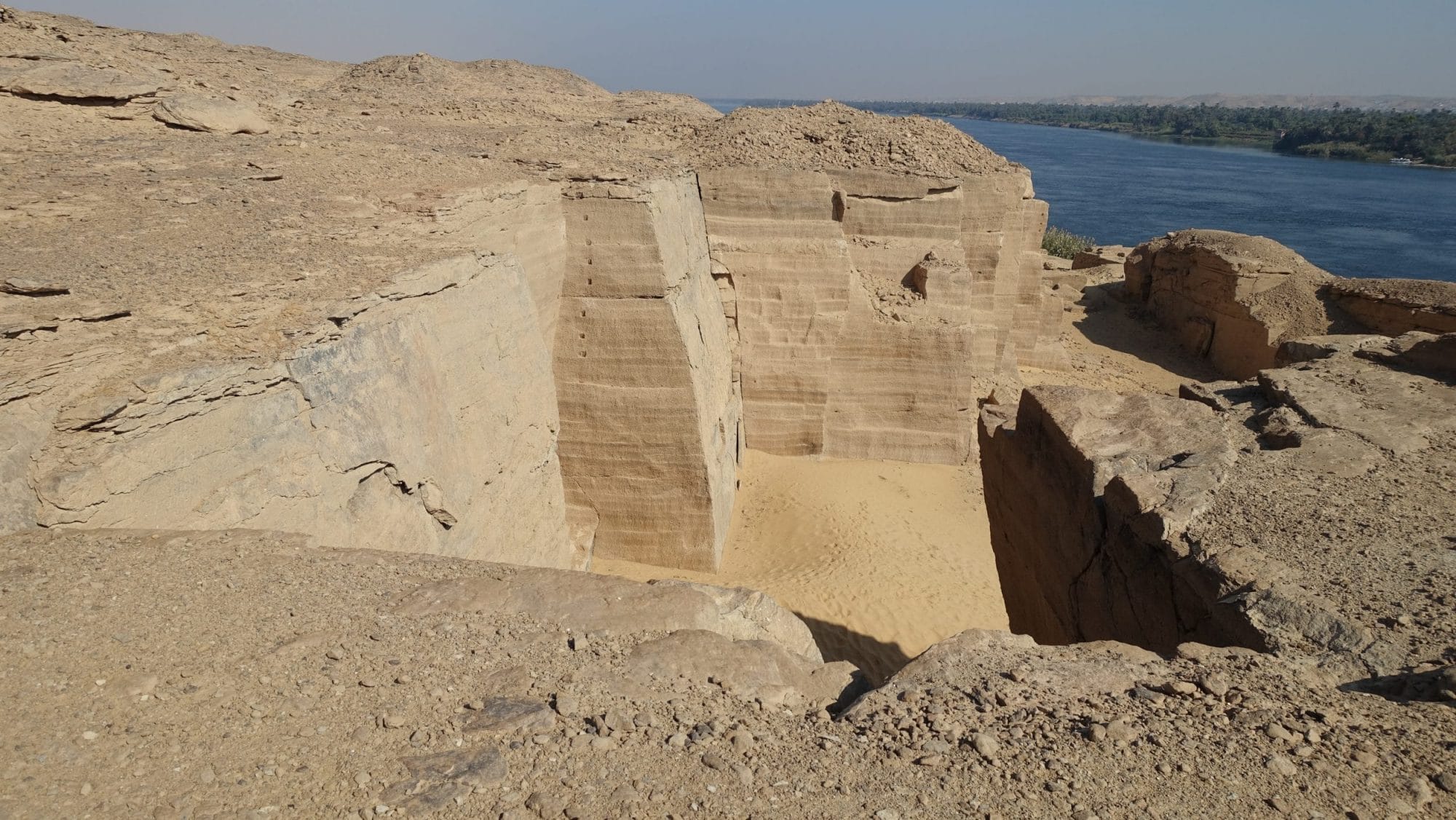 Arriviamo alla cava di Jebel Silsileh. Ci sono due cave su entrambe le sponde, ma noi visitiamo solo una sponda perché l’altra non è accessibile ai turisti. All’entrata della cava c’è un piccolo tempio, scavato nella roccia, come Abu Simbel. Questa cava non è più attiva, perché è classificata