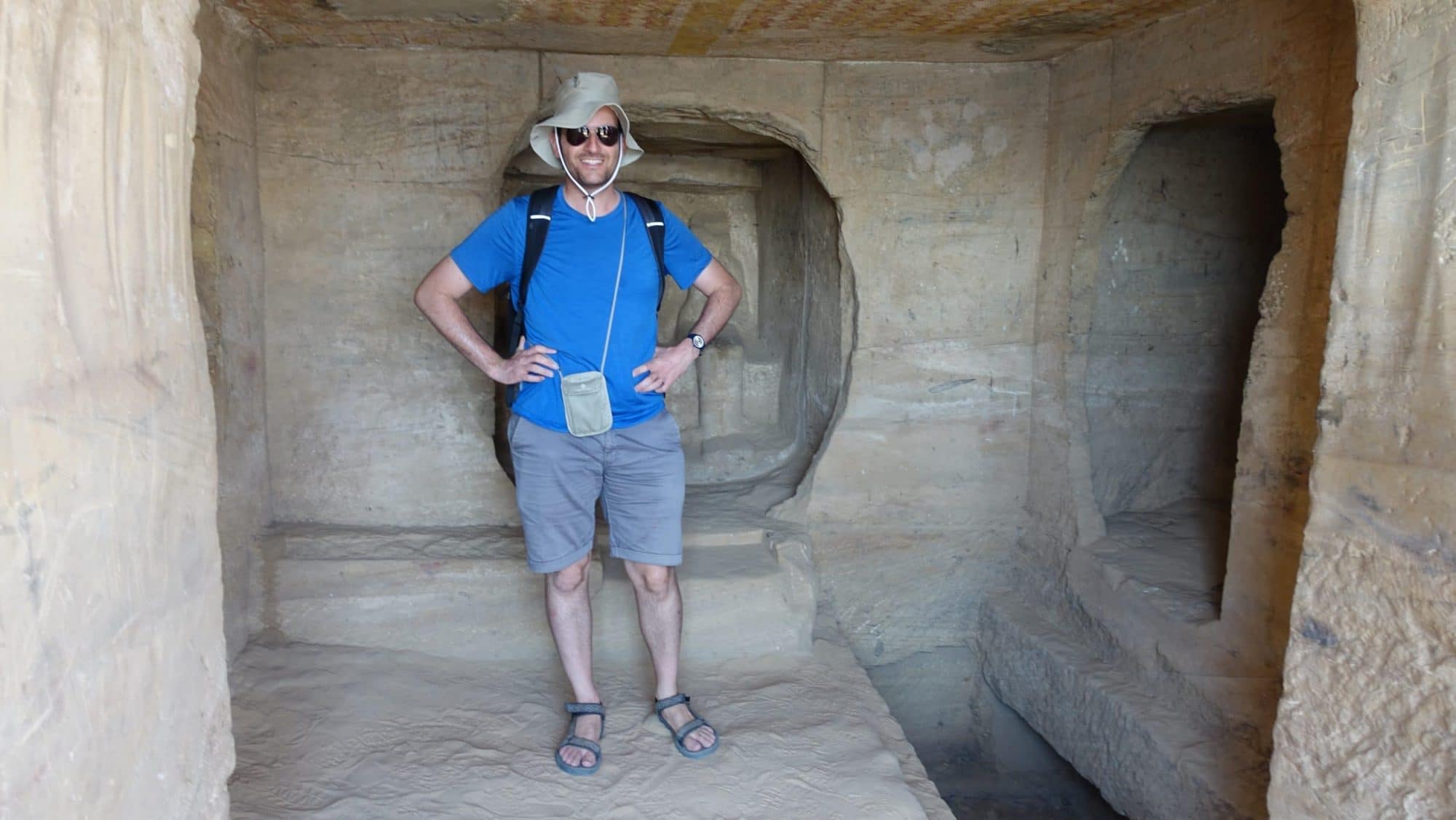 La nostra guida Bassem ci mostra la dea del vento fuori dal tempio e io ne approfitto per pregare segretamente per avere più vento oggi
