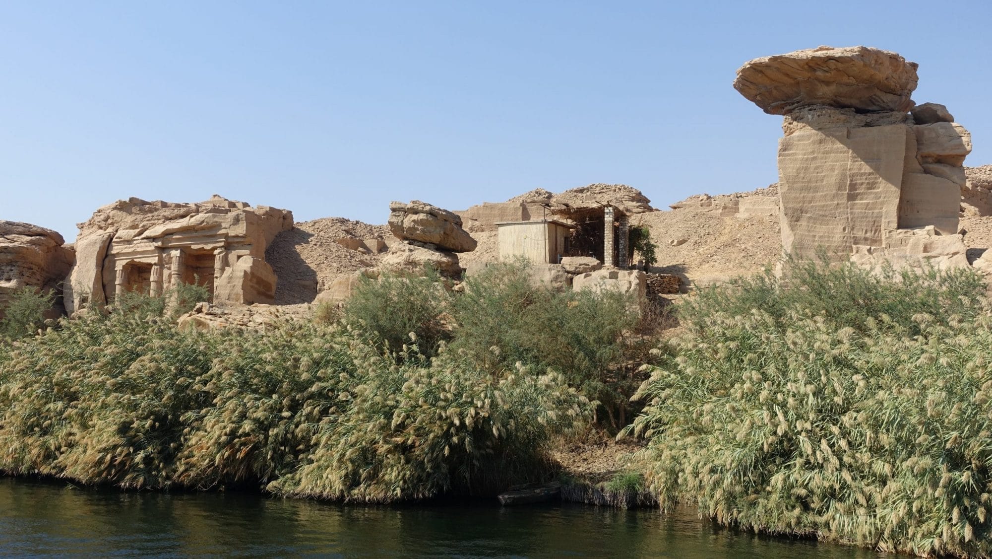 Da questo punto di vista, vediamo anche in lontananza una forma di fungo (ma chiamato melanzana in arabo), la leggenda dice che è per appendere una catena (c’è un altro fungo dall’altra parte della riva, ora inesistente), e impedire l’avanzata dei nemici dell’Egitto