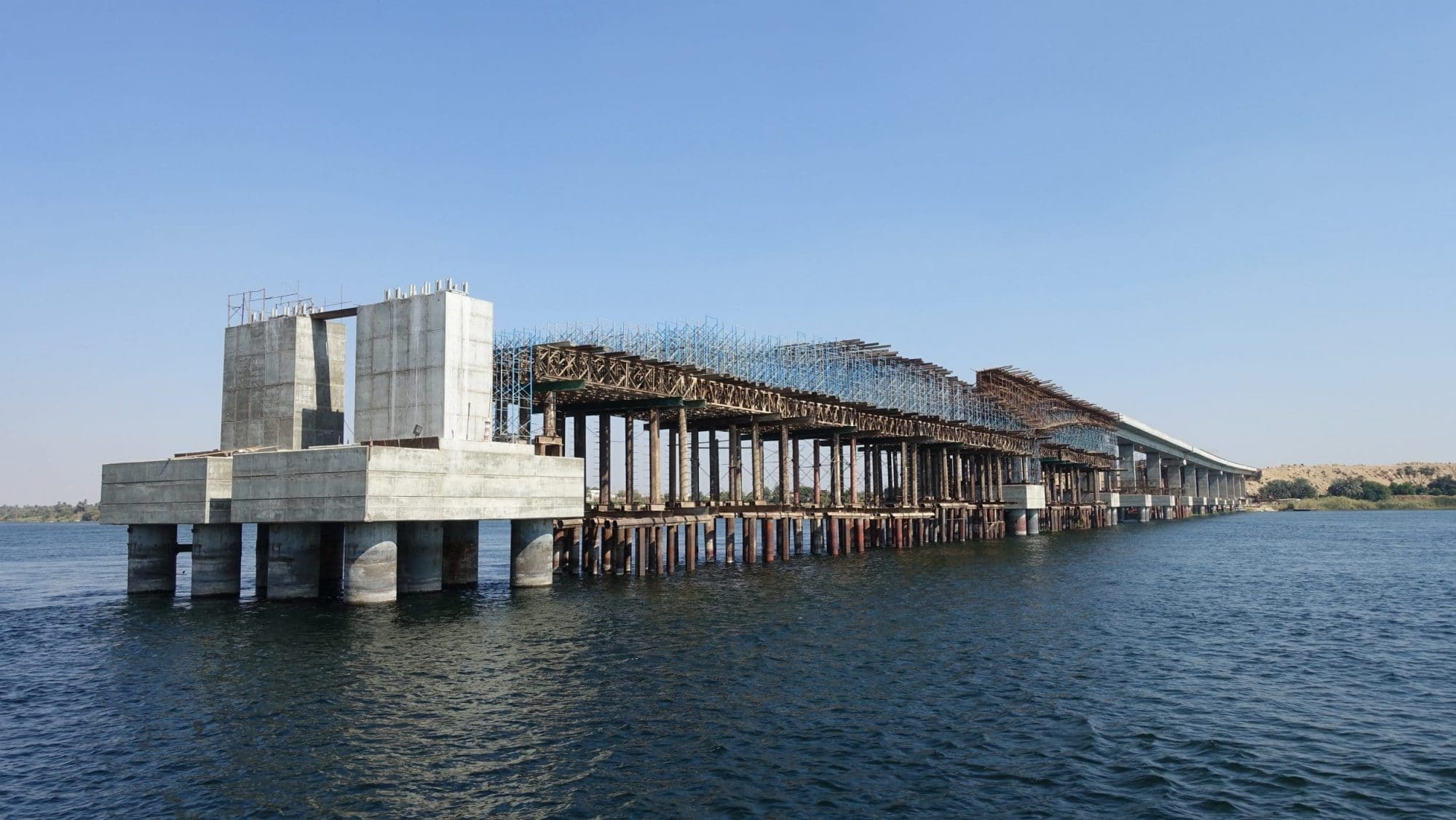 Ci troviamo di fronte a questo enorme ponte in costruzione. Apparentemente, è per migliorare l’accesso a Kom Ombo
