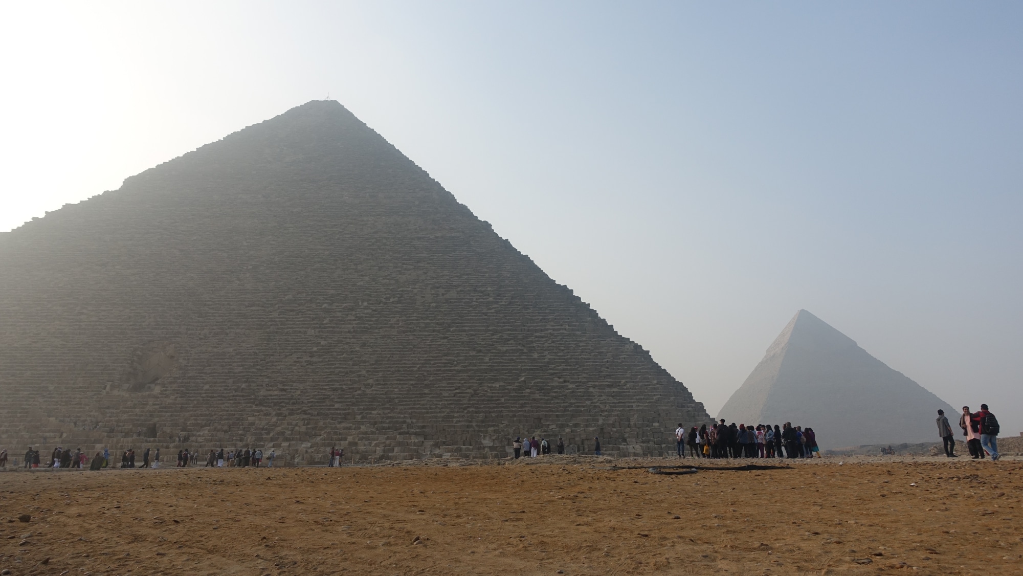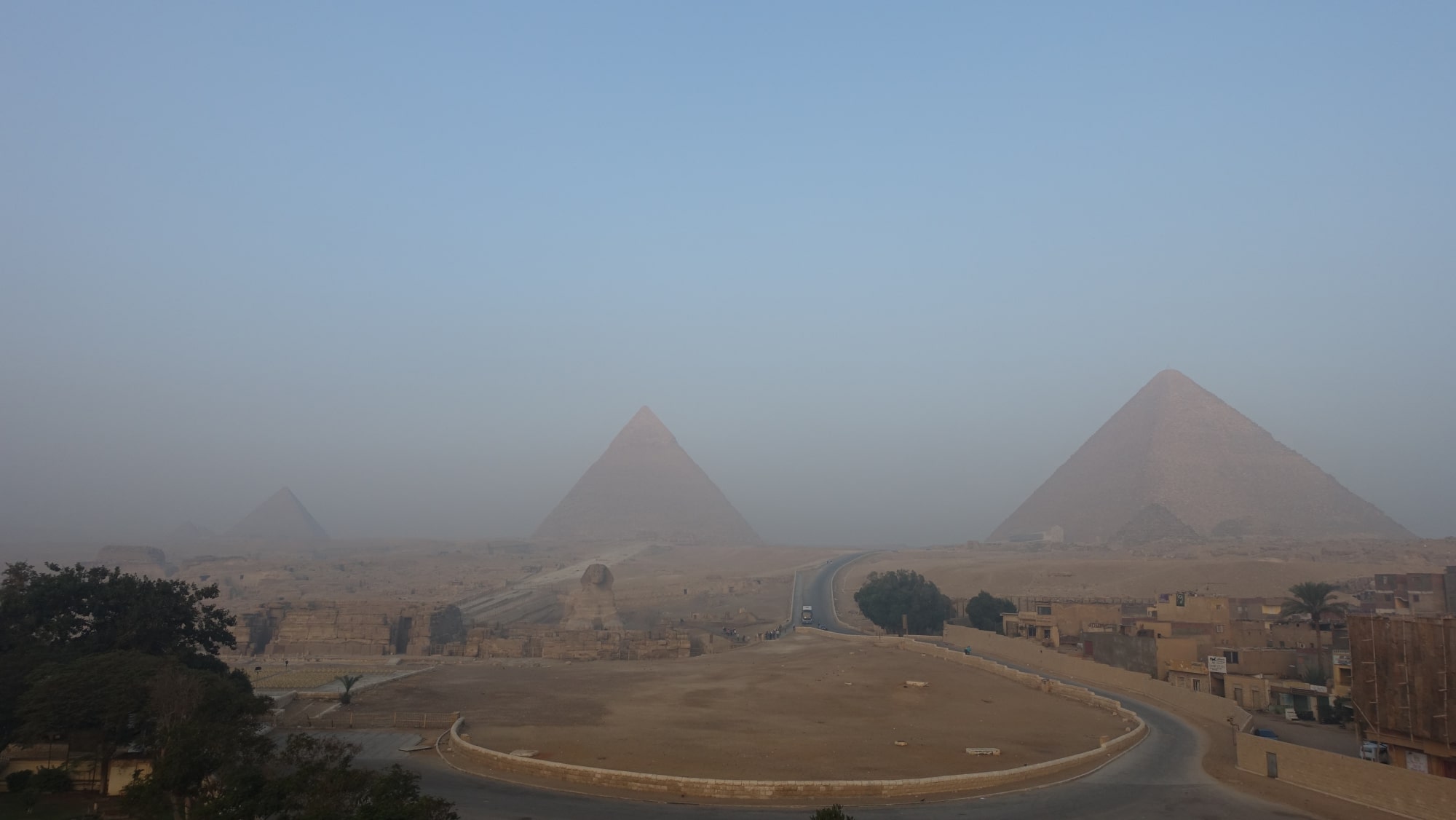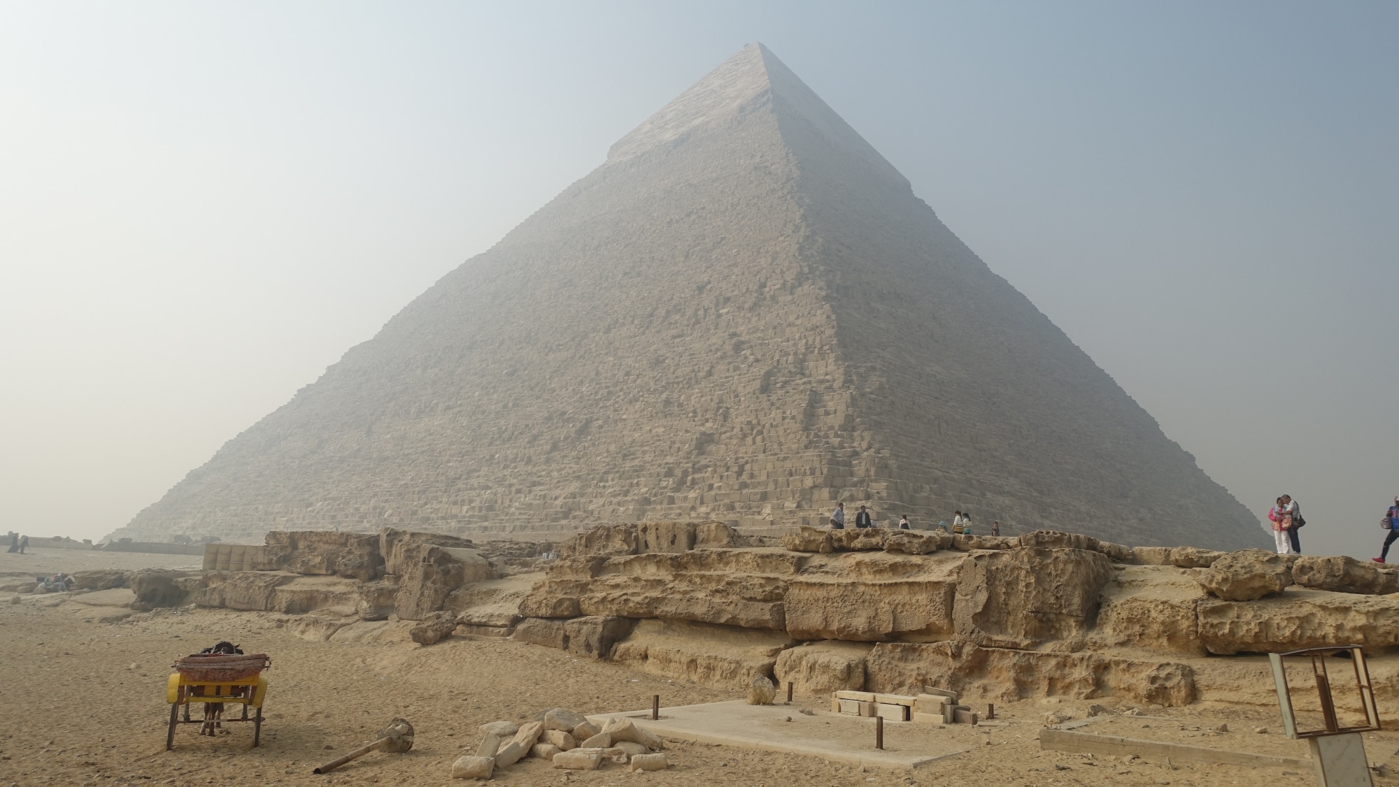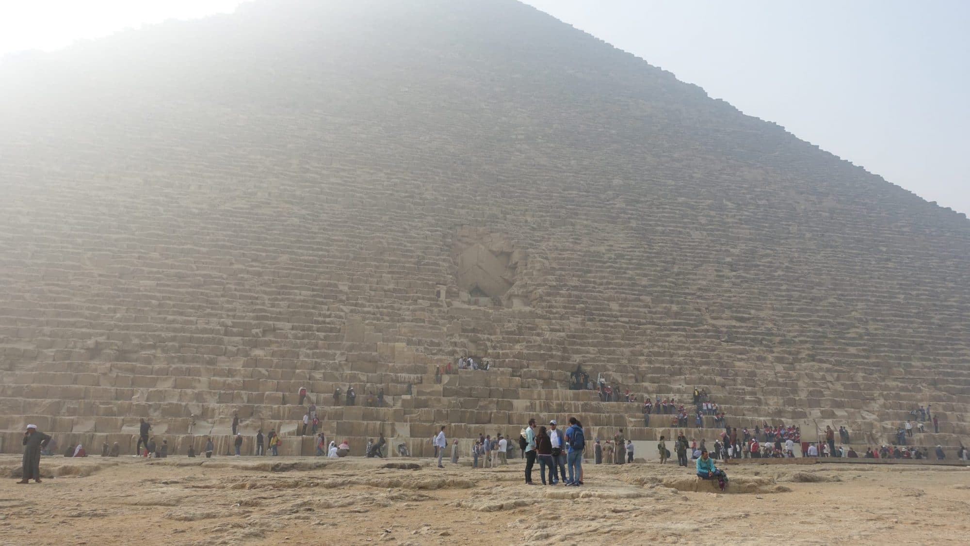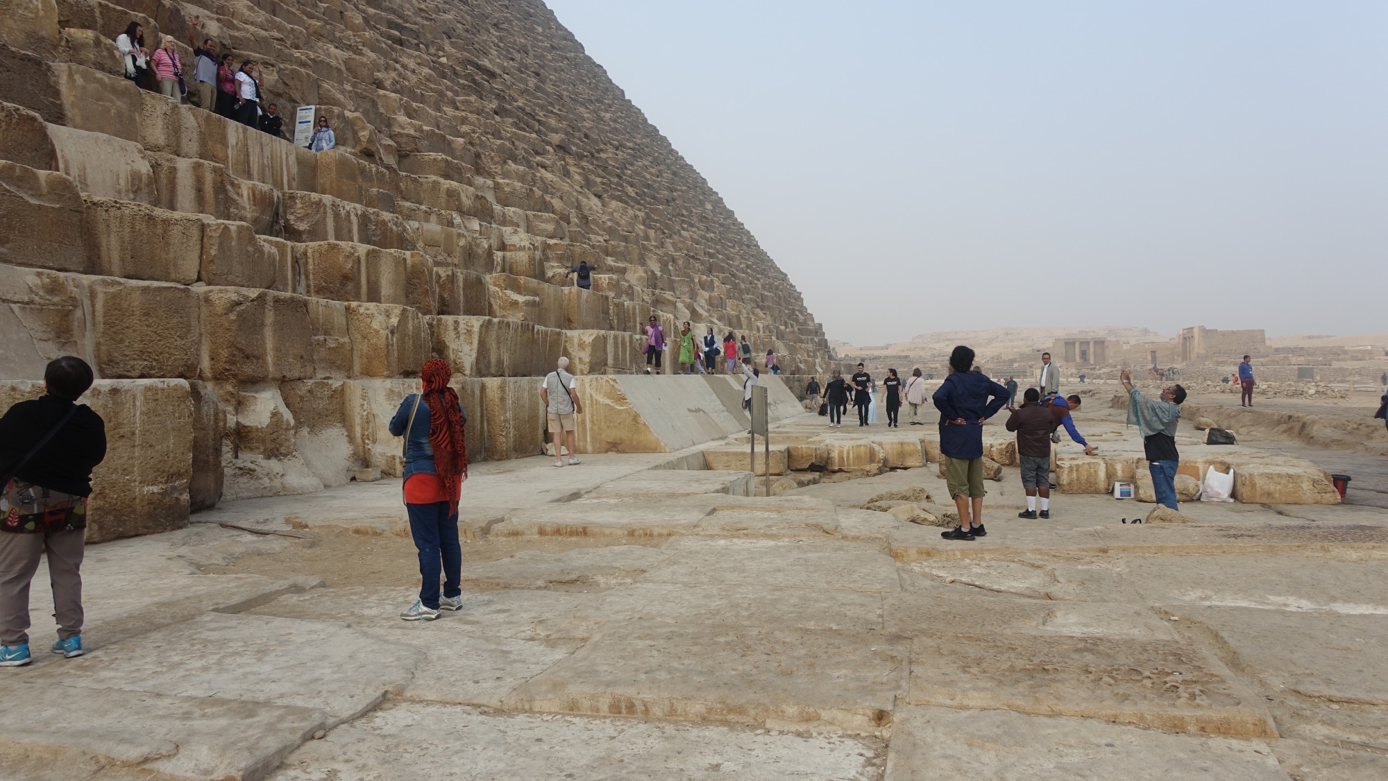 Bim bam bam, siamo davanti alla Grande Piramide. È grande come immaginavo. La nebbia nasconde un po’ le altre piramidi, ma il tutto è ancora incredibile.