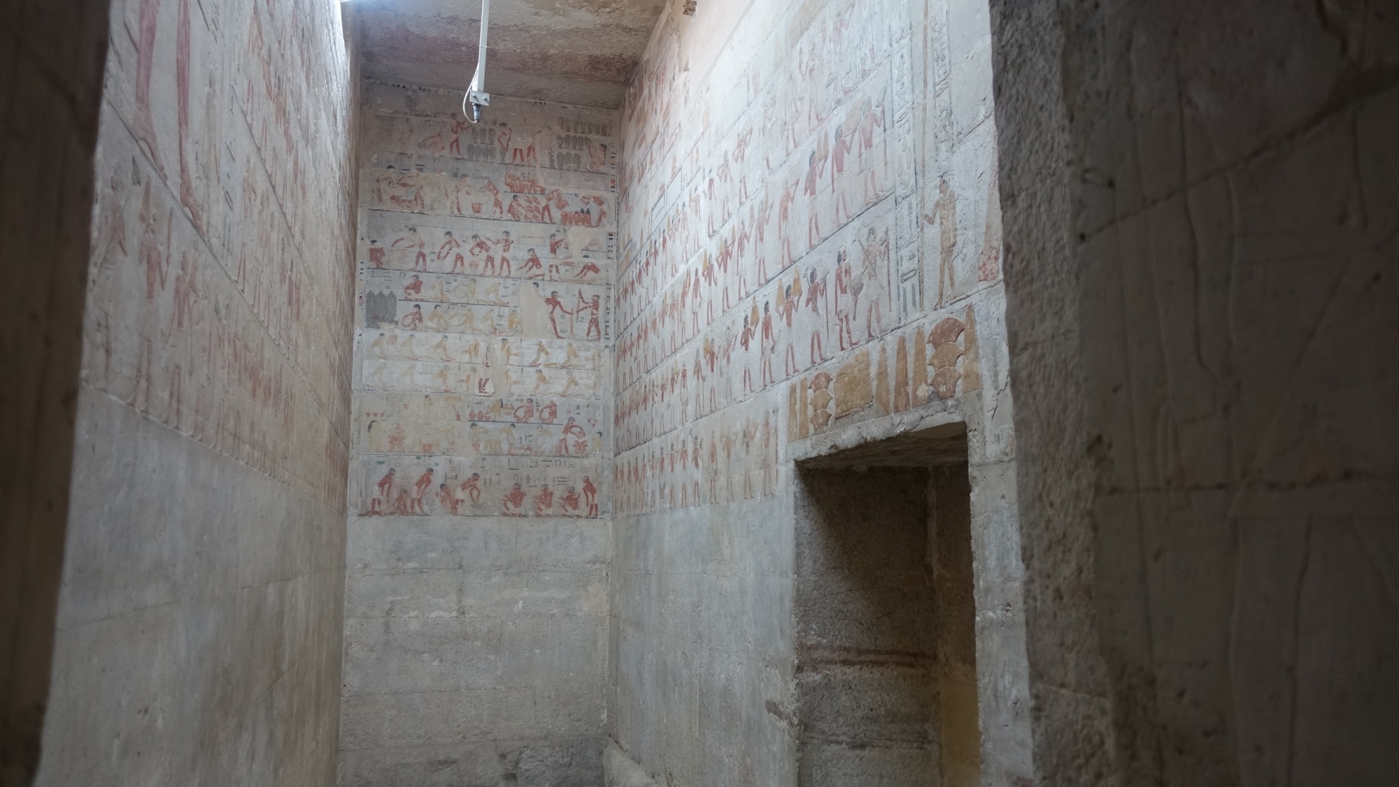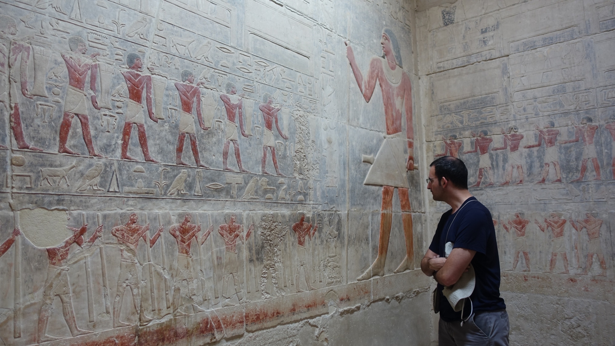 Poi visitiamo i Mastabas. Le Mastabas sono tombe che sembrano una massa di mattoni, divise in celle/stanze. Sembra un palazzo reale. Il corpo è sepolto in una tomba molto profonda. All’interno delle Mastabas, riservate ai dignitari o alle persone molto ricche, ci sono molti disegni colorati e vivaci delle attività quotidiane dell’antico Egitto.