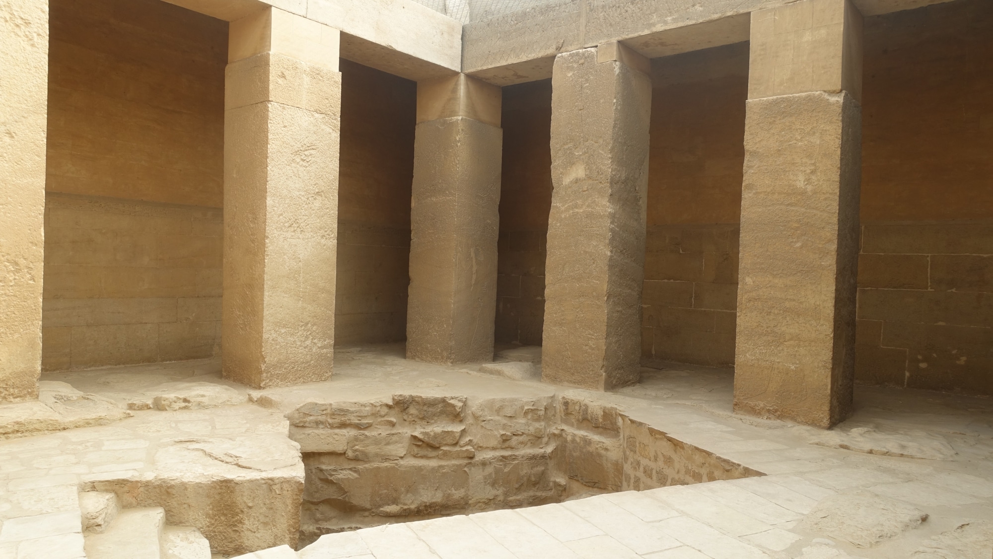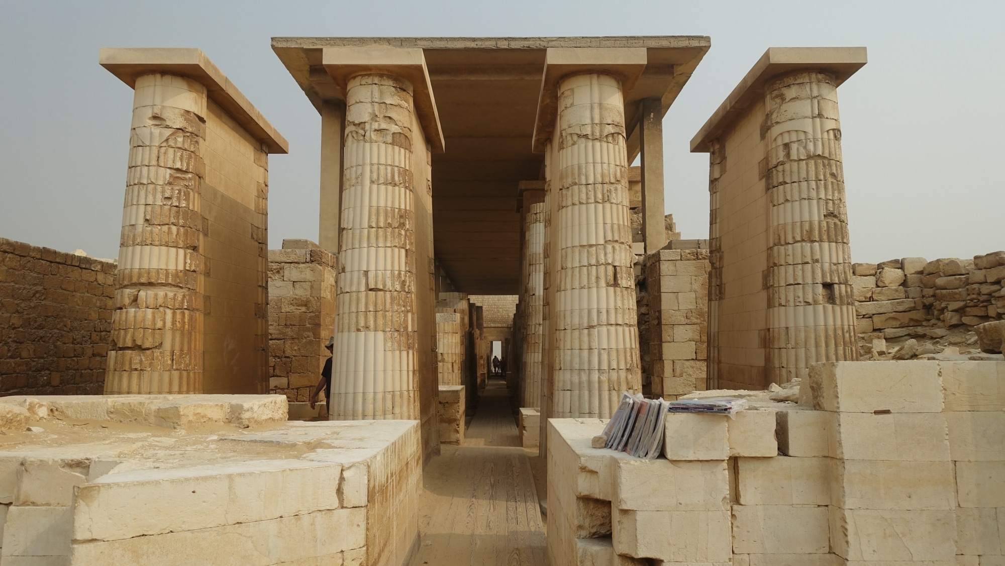 Il complesso intorno alla piramide a gradoni è davvero interessante da vedere. Passiamo prima da un tempio con 40 colonne che rappresentano le 40 province d’Egitto.