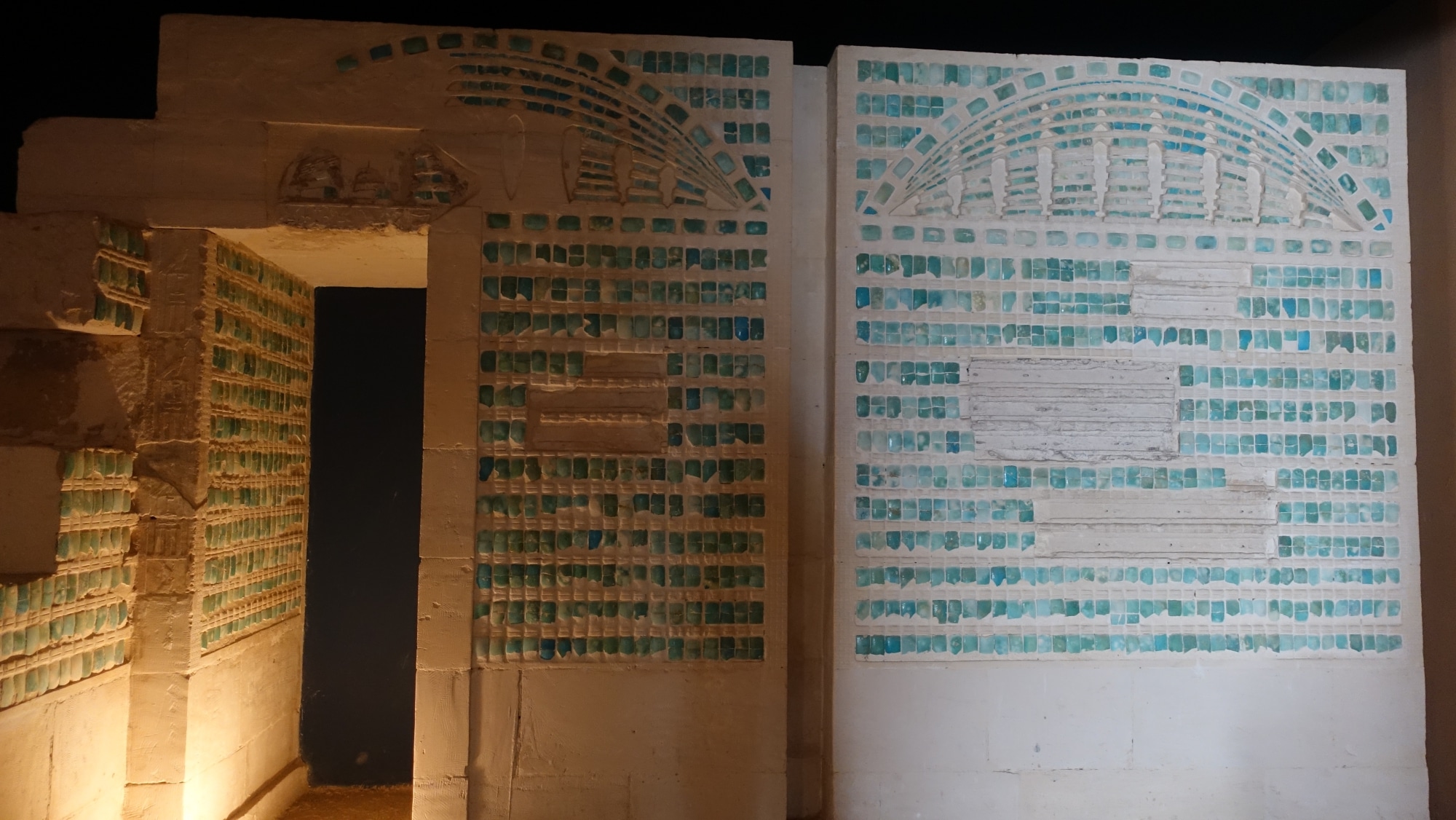 Le ceramiche sulle pareti all’interno della piramide a gradoni.