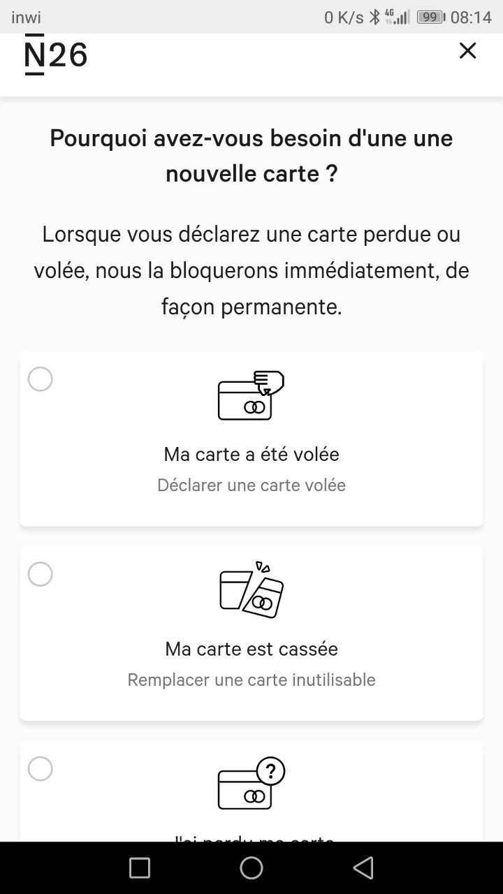 Questo è l’unico vero inconveniente dell’hacking perché la richiesta di una nuova carta vi costerà 25 € e N26 offre di inviarla solo in Francia. Non molto pratico se sei all’estero. Così ho dovuto pagare in più una spedizione DHL in Turchia.