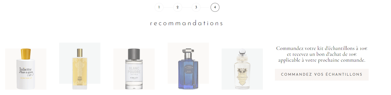 Non appena ho finito di valutare le fragranze, mi viene offerta una nuova diagnosi e una lista di altre 5 fragranze e posso comprare un nuovo kit di campioni per 10€.