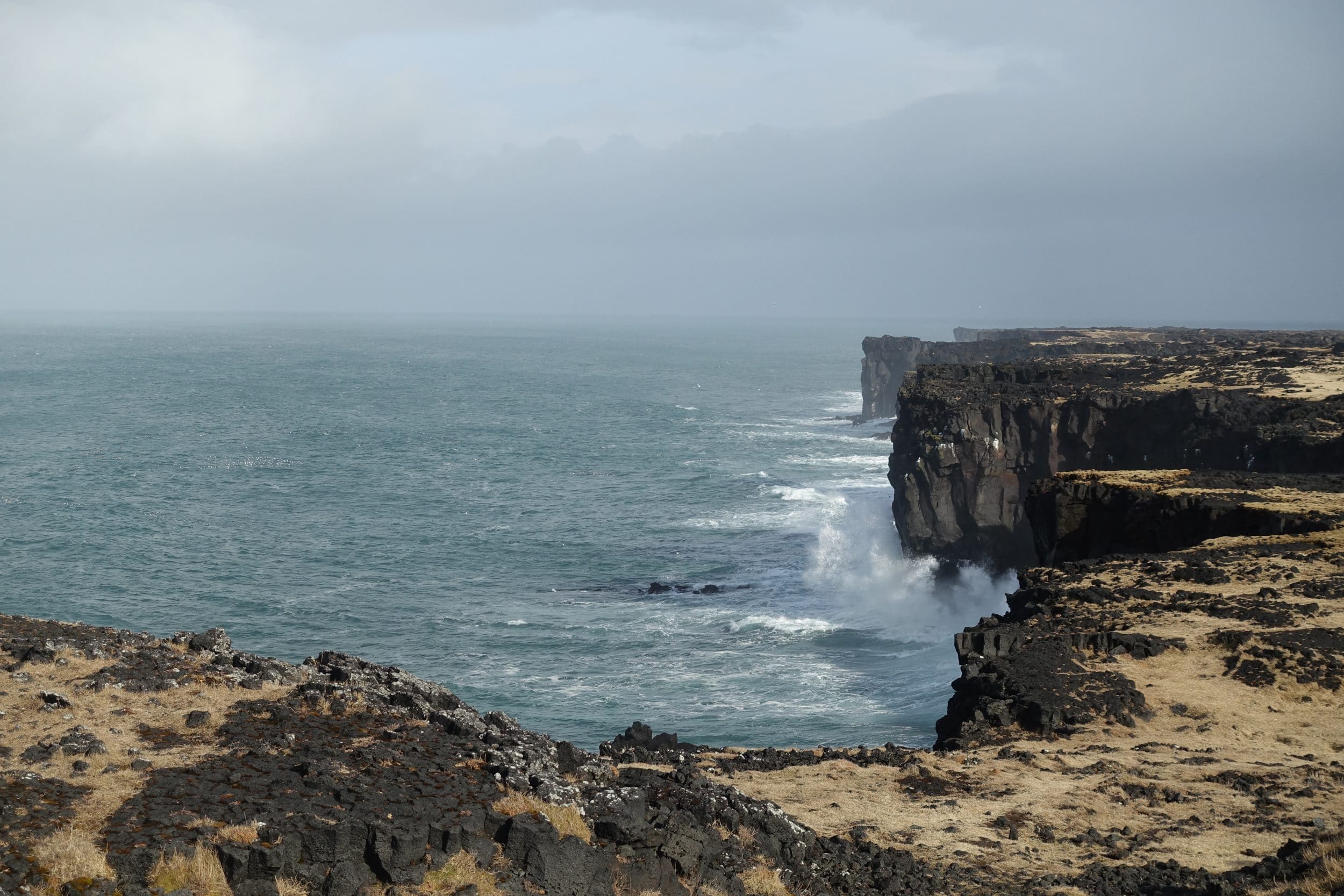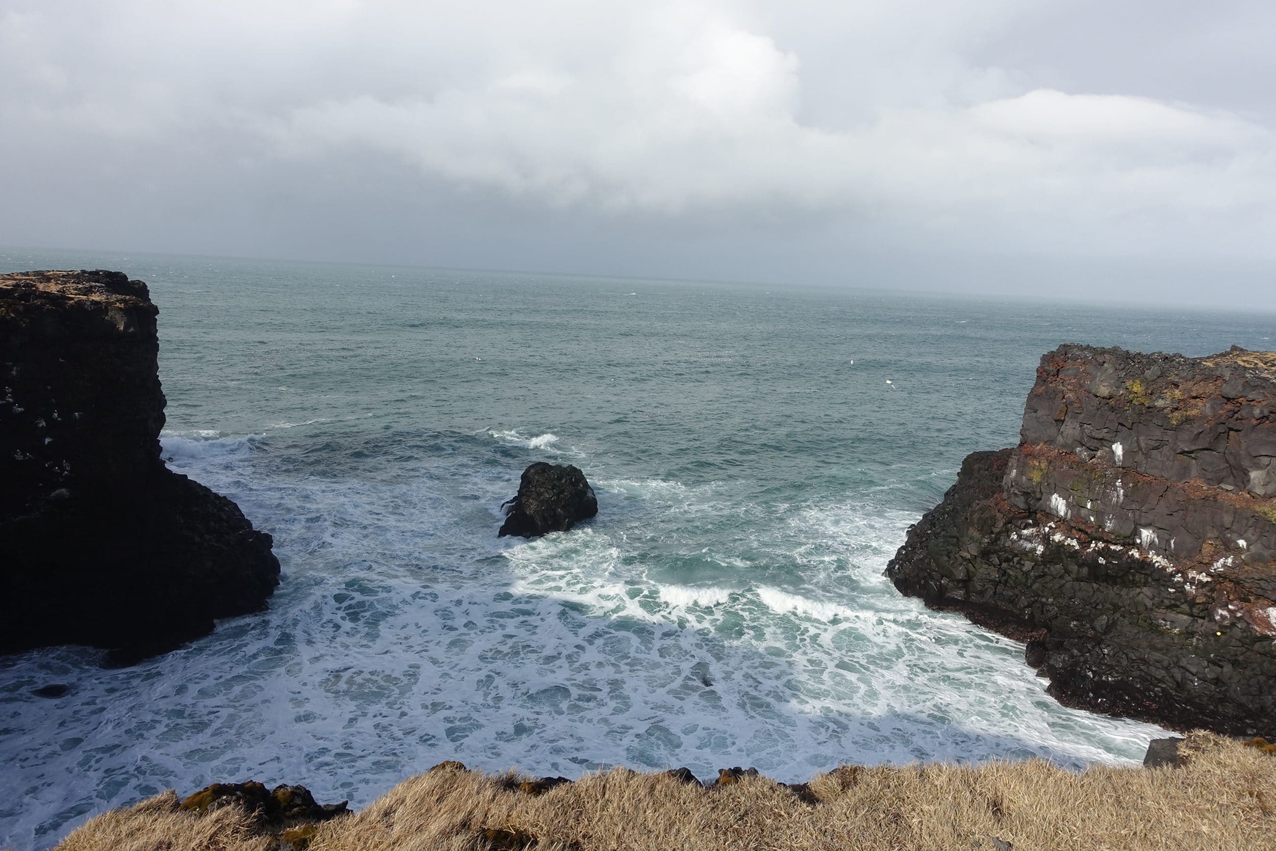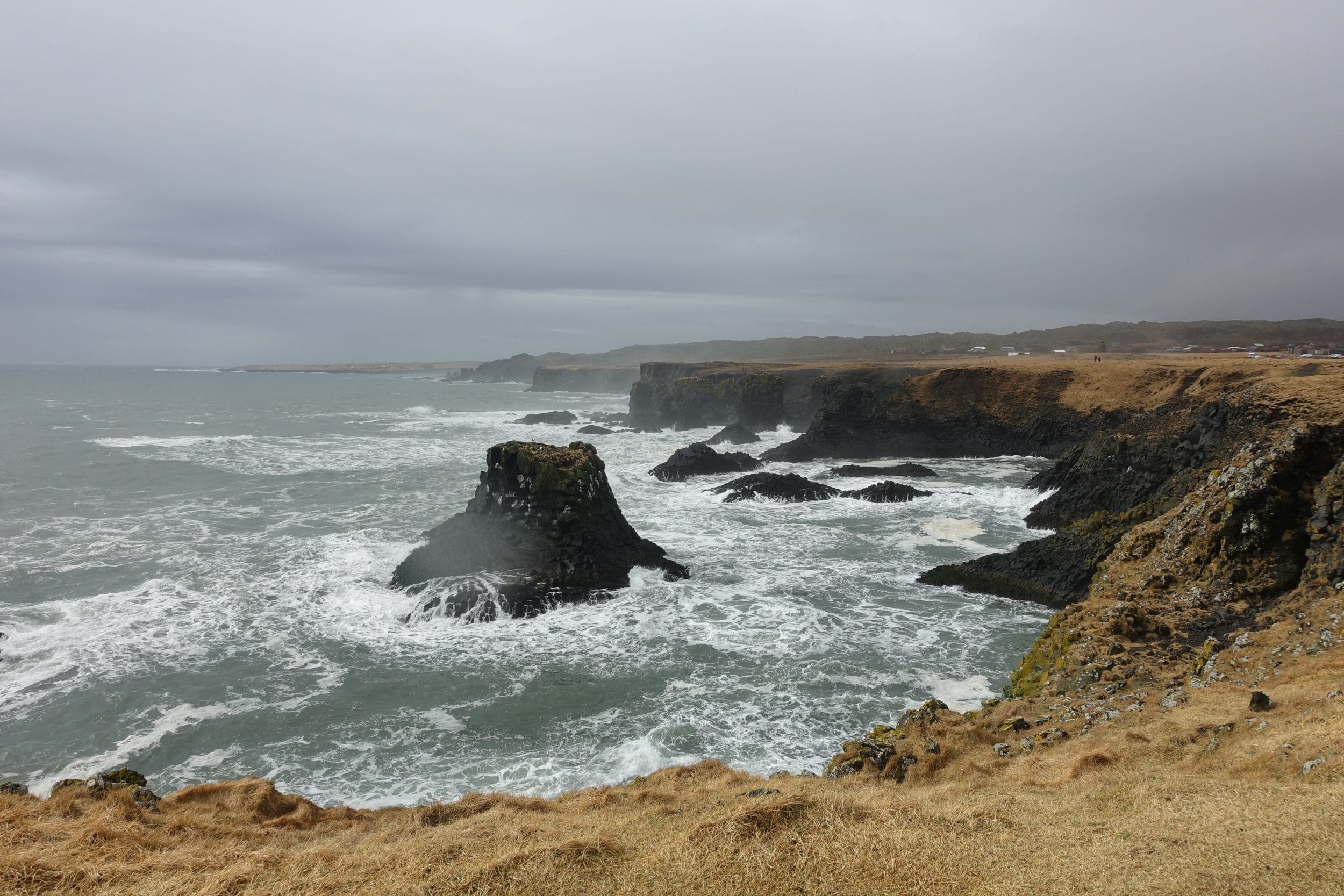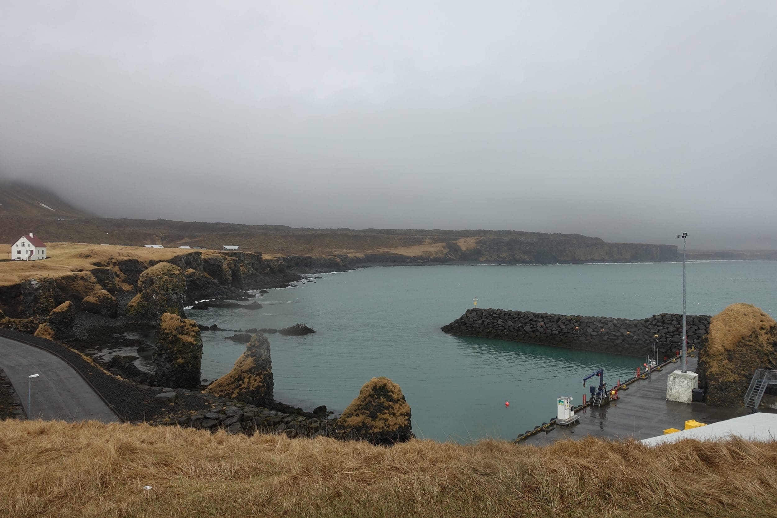 Era uno dei più grandi villaggi di pescatori della zona. Ora è un posto triste. Ci andiamo per fare una foto alla grotta Badstofa, che è molto bella quando il tempo è bello perché si possono vedere chiaramente i tre colori – di tre eruzioni vulcaniche. Vi lascio fare qualche ricerca se volete vedere com’è.