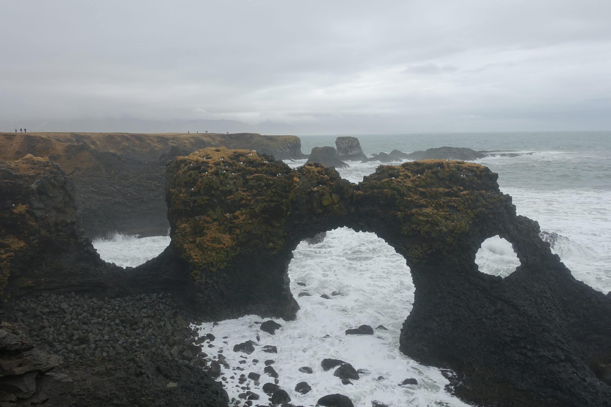 Un’altra tappa popolare subito dopo è Londrangar, una coppia di pinnacoli rocciosi in Islanda. Sono lastre di basalto vulcanico, scavate nella roccia più morbida dall’erosione.