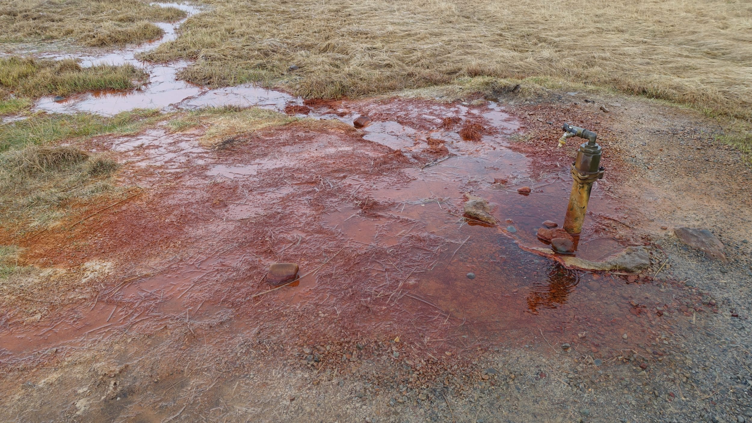 Il contadino, proprietario del posto, ha installato un rubinetto che può essere aperto per riempire la sua bottiglia. Chiede una partecipazione di 200kr (da mettere in una scatola). Vedendo il colore dei dintorni e che ho già troppo ferro nel mio sangue, non ho fatto il test 🙂