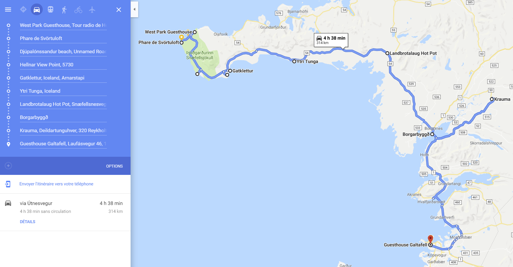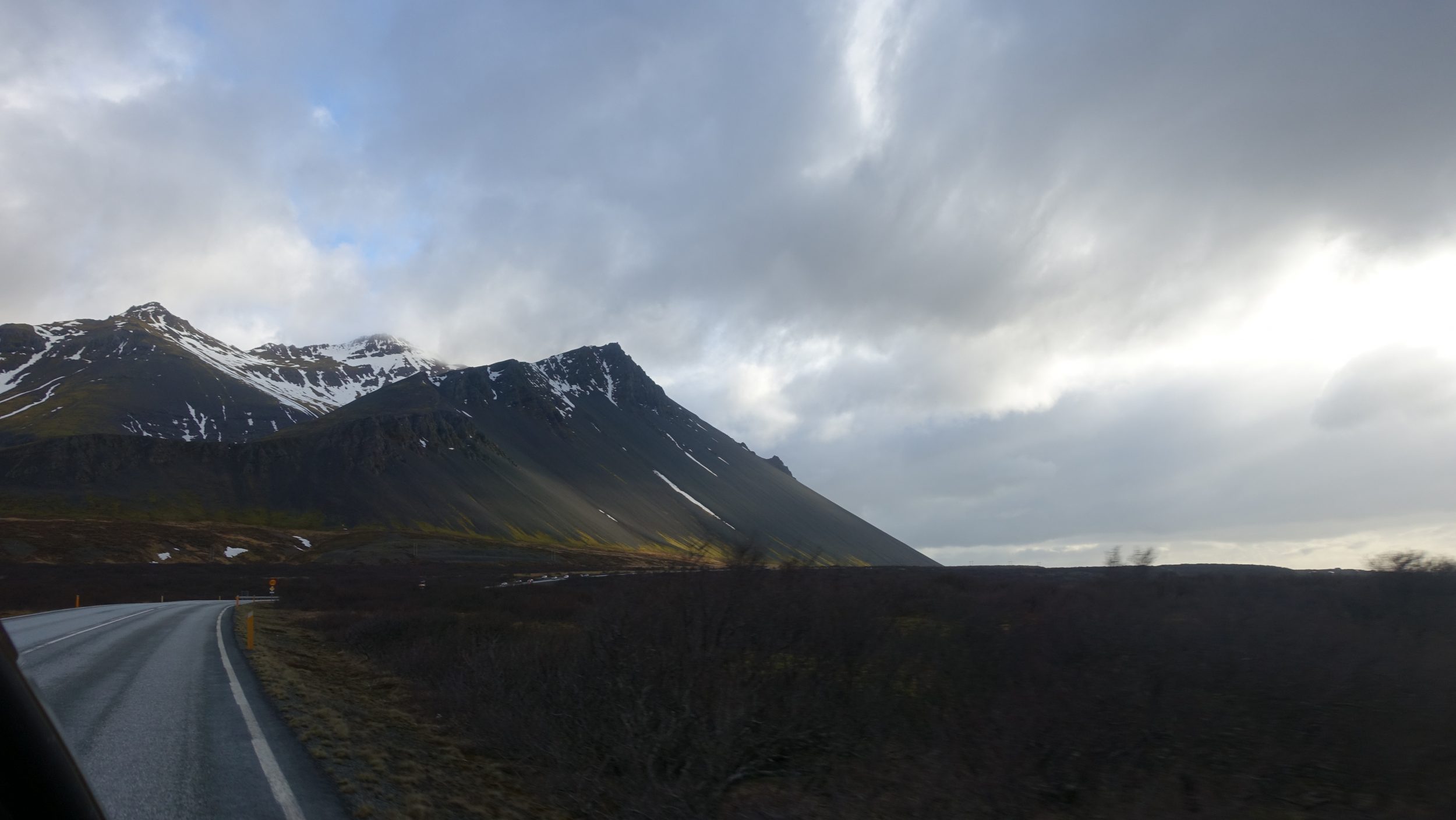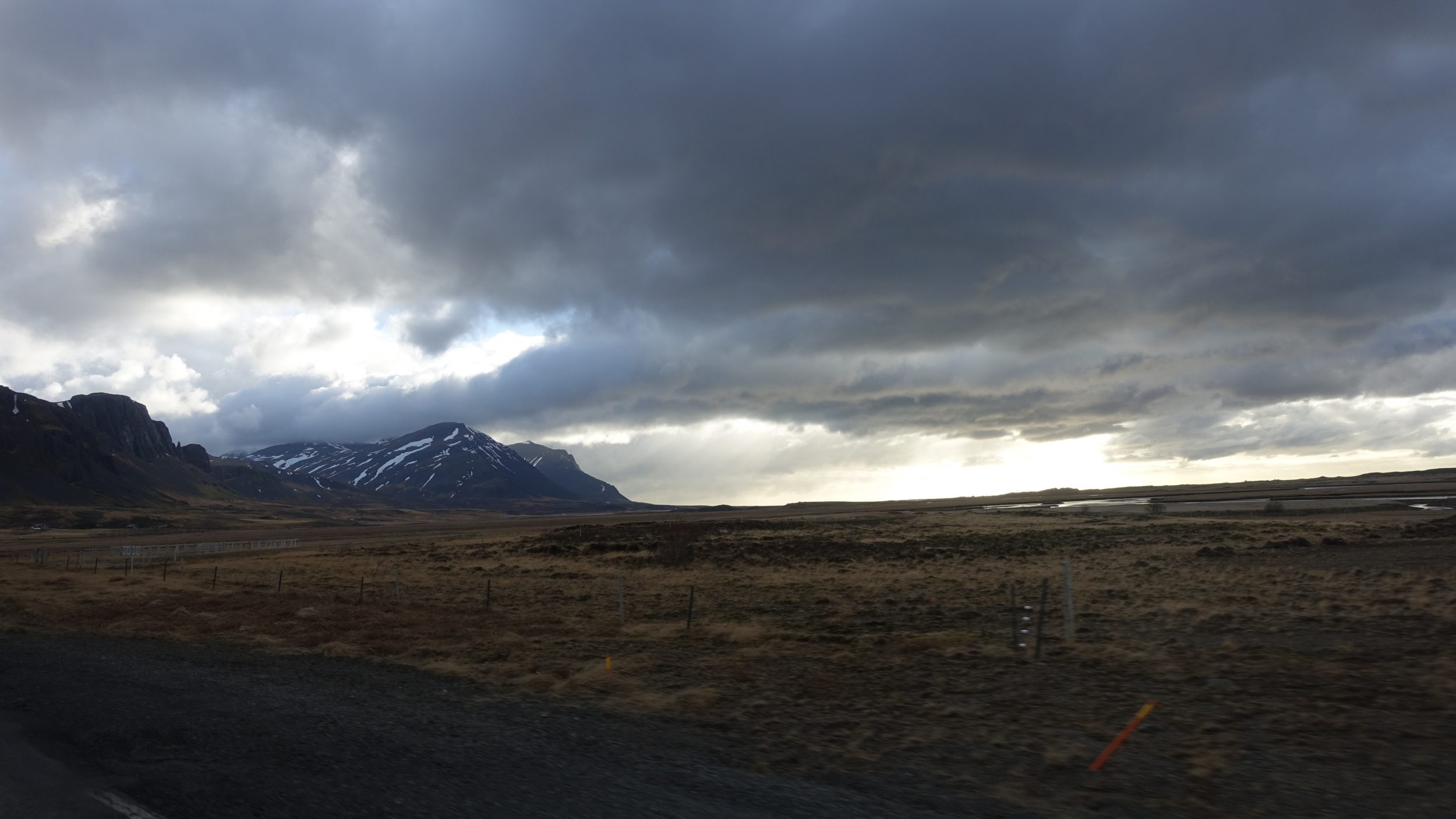 Oggi, sperimentiamo per la prima volta la combinazione di vento e pioggia così caratteristica dell’Islanda. Con qualche rara schiarita di tanto in tanto. Prima, abbiamo avuto o il sole o il cielo grigio, ma ancora nessuna pioggia. Con queste condizioni e visto che siamo alla fine del nostro soggiorno, le visite sono meno fresche e siamo troppo pigri, basta scendere dalla macchina