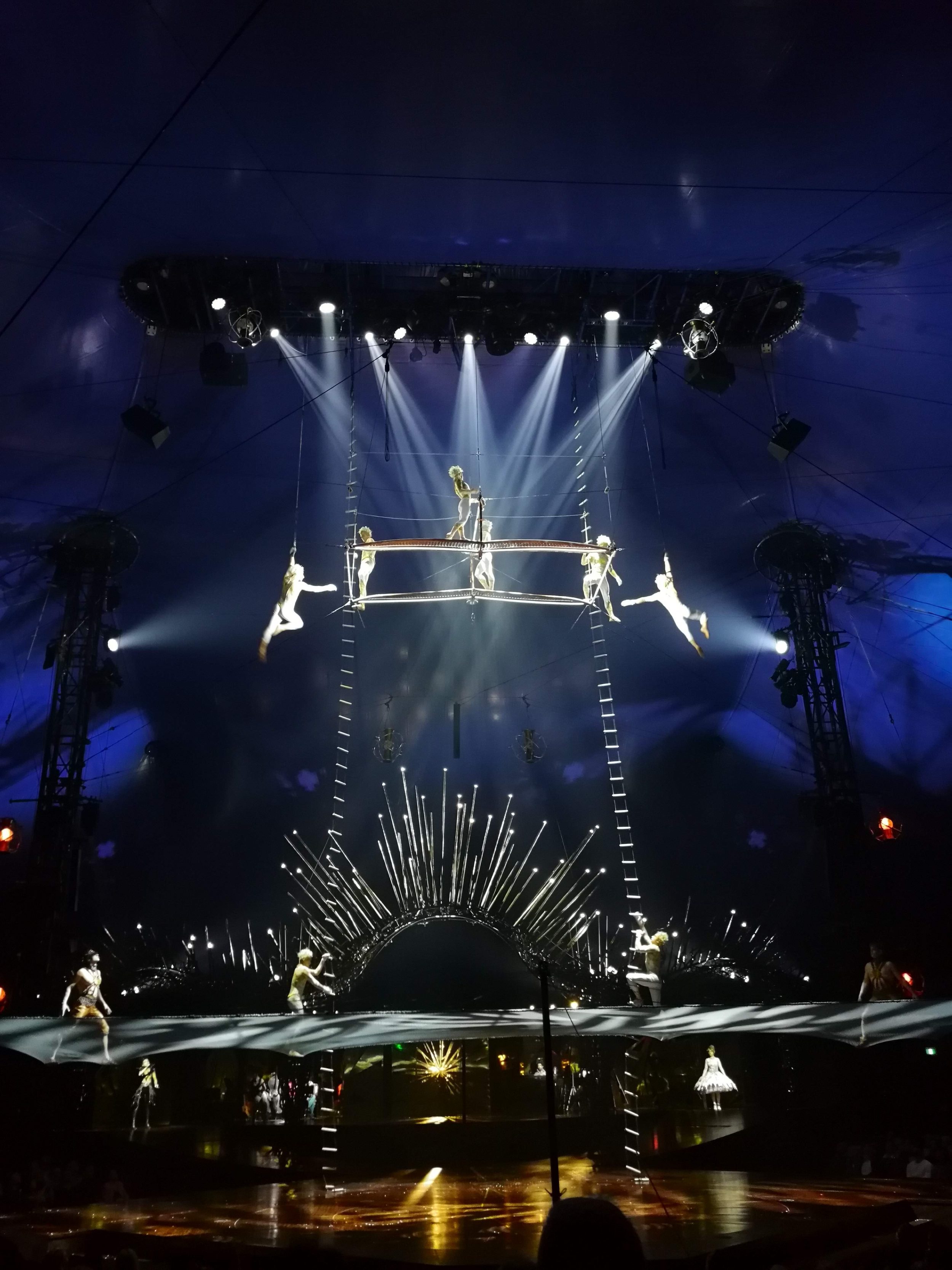 Lo spettacolo sta iniziando e stiamo ricevendo subito molta attenzione. Il Cirque du soleil si distingue per l’assenza di animali e si basa principalmente su numeri acrobatici.