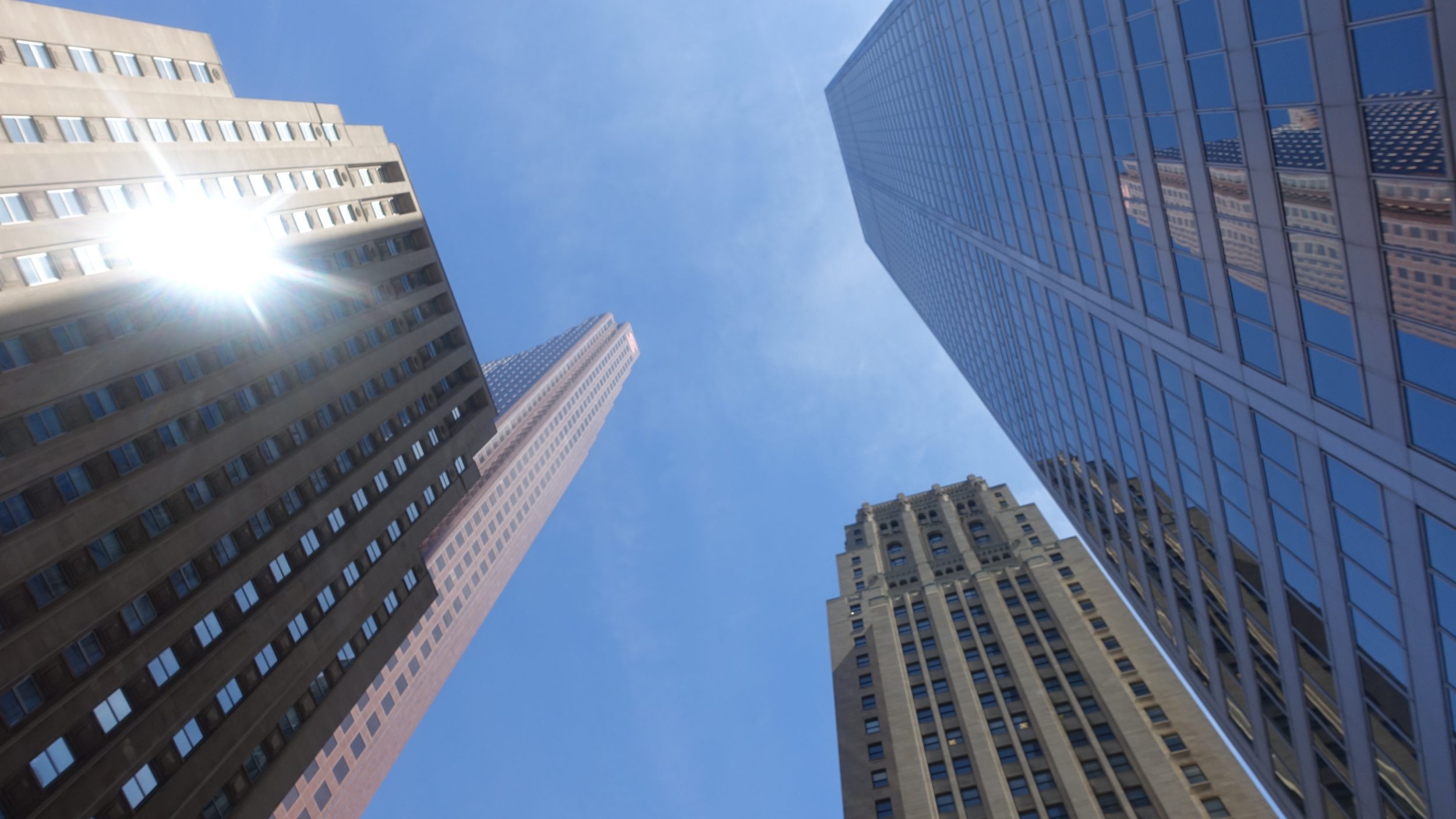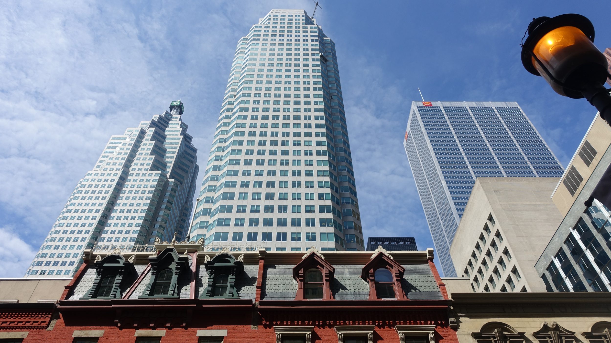 Prendiamo la metropolitana e l’autobus fino al centro della città, dove le vecchie case si trovano accanto ai grattacieli.