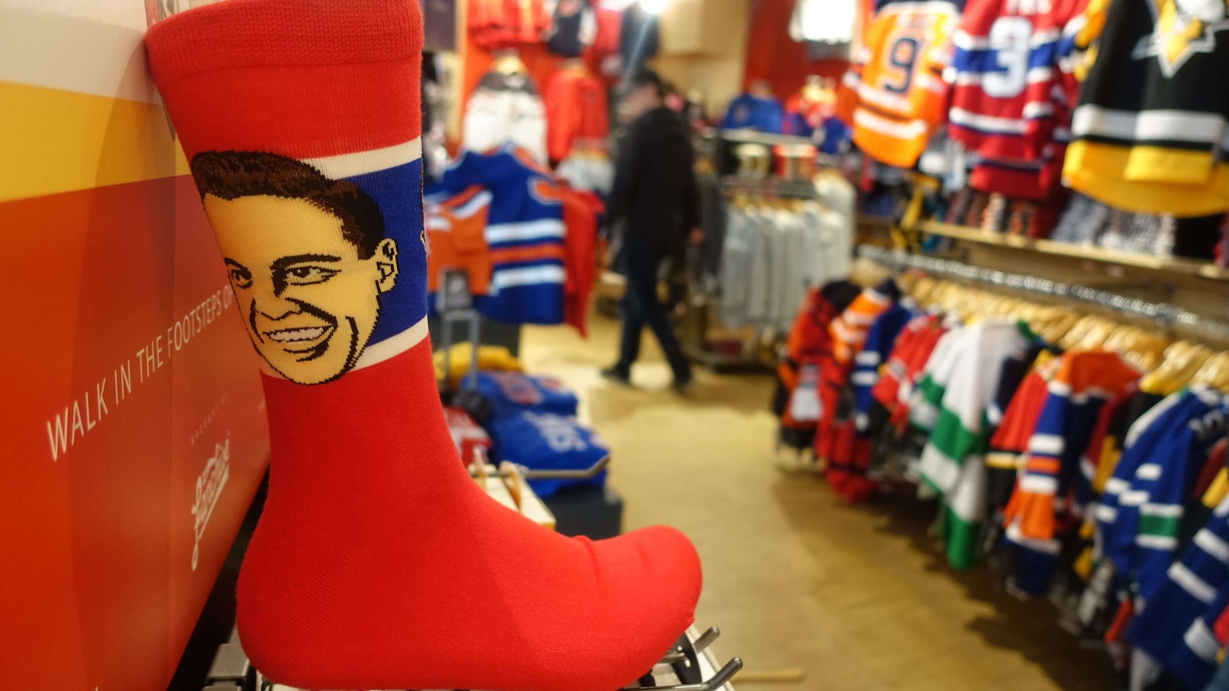 Alla fine di una partita di hockey, qualche giorno fa, abbiamo visto un sacco di tifosi in strada, avevano tutti la maglietta giusta e alcuni avevano anche dei calzini con la testa dei giocatori.