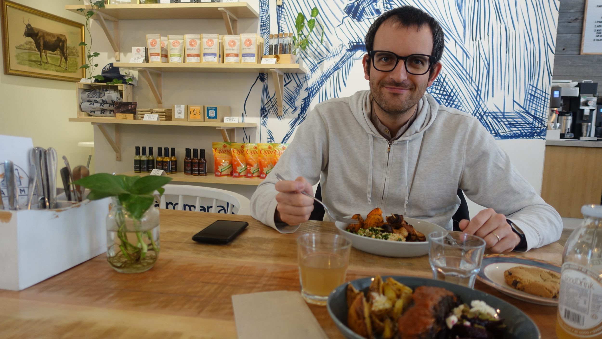 Finiamo, senza saperlo, in un ristorante sano, organico, eco-responsabile… dove i dirigenti locali si incontrano per il pranzo. È molto, molto buono, ma piuttosto caro (25$CA/persona senza mancia)