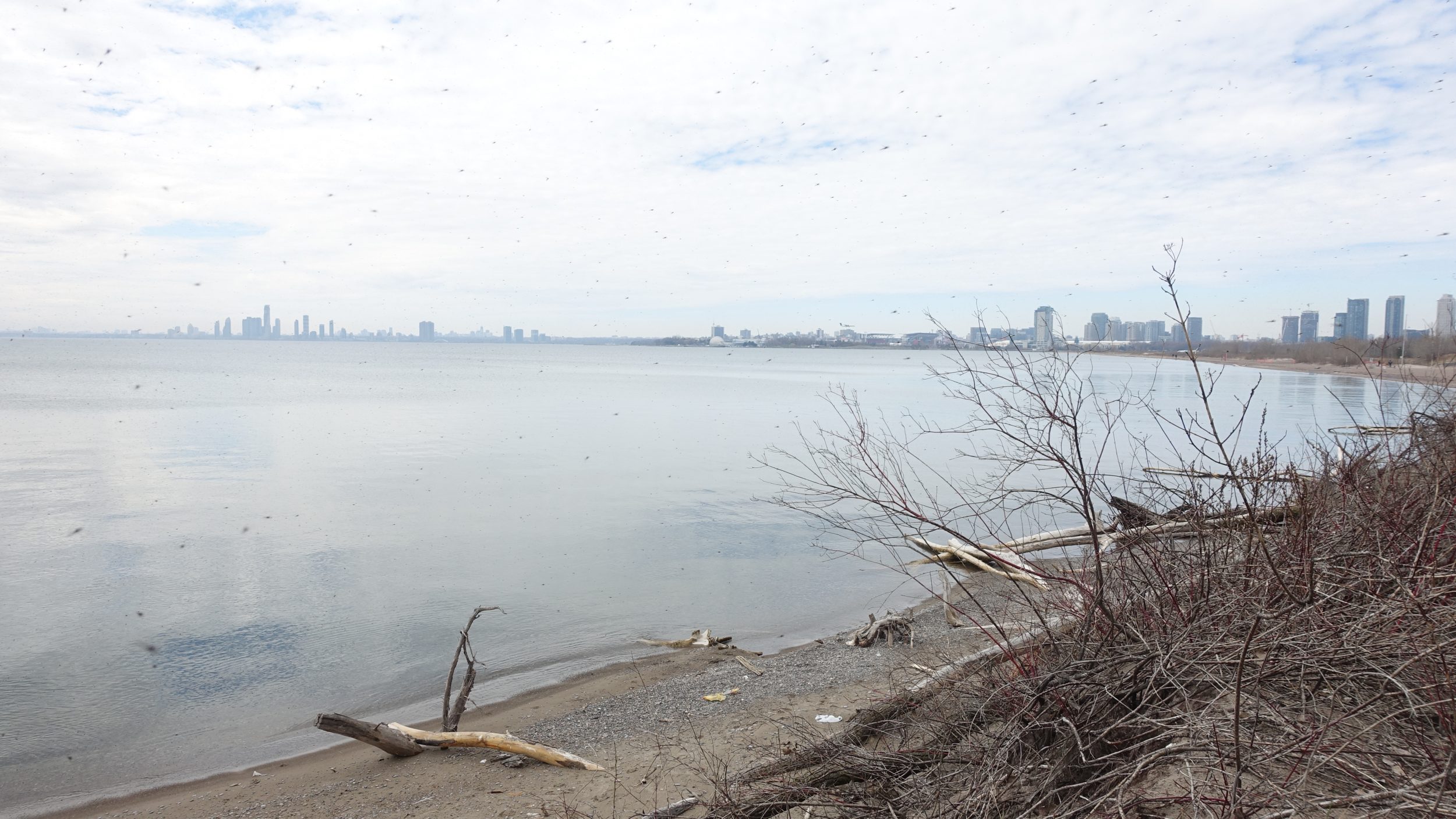 Quindi è con tutti i nostri strati di vestiti invernali – usciamo in strada – perché c’è il sole, ma fa ancora molto freddo. Iniziamo con l’High Park vicino a casa nostra, sperando di vedere i ciliegi in fiore. Ma non c’era assolutamente nulla. È stato un inverno particolarmente lungo quest’anno, e siamo a Toronto 2 settimane prima della fioritura. È un peccato.