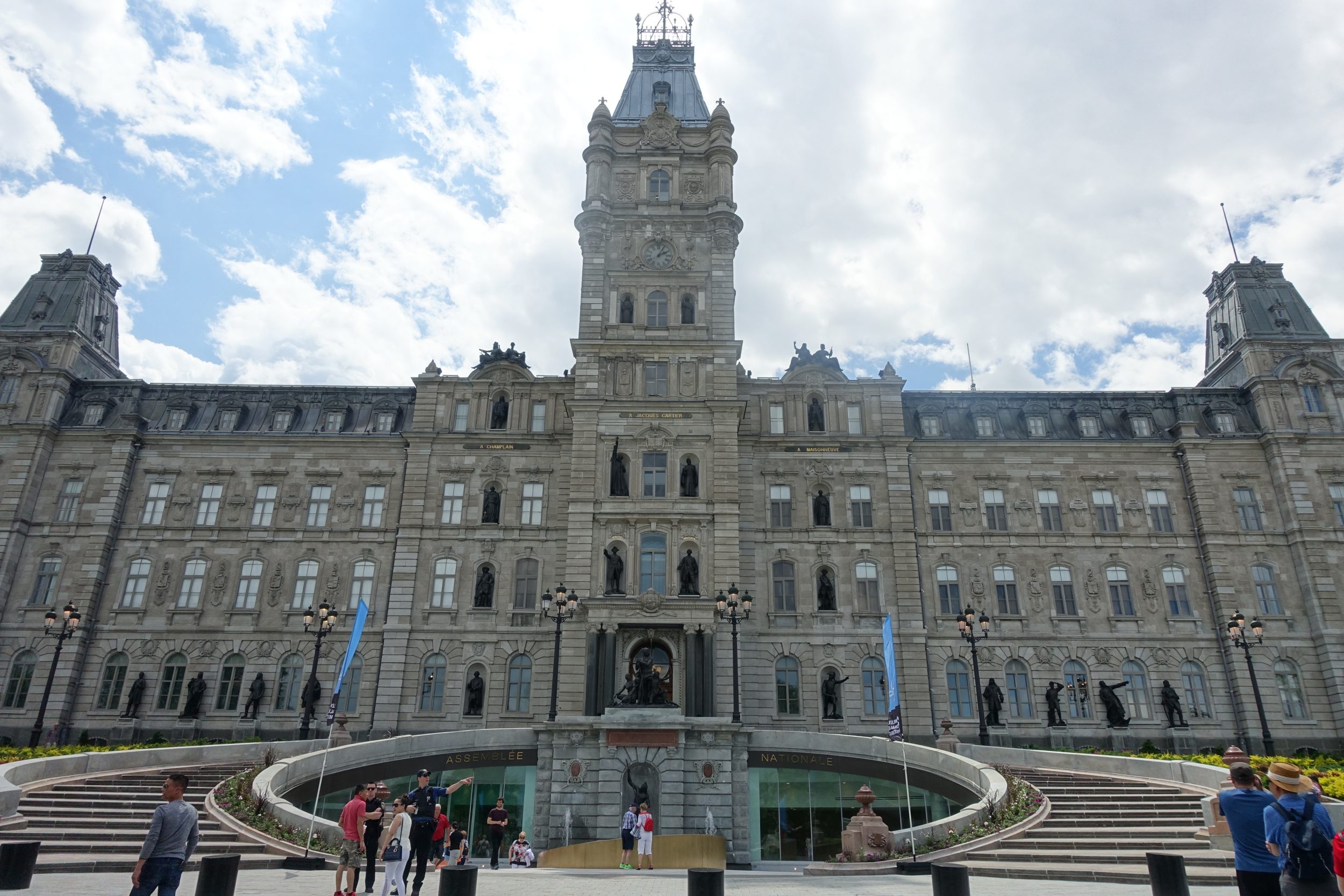 A 10 minuti a piedi si trova il Parlamento, che è molto affollato perché i pullman turistici scaricano qui i loro carichi di clienti. Oggi, c’è una nave da crociera che è attualmente bloccata a Quebec City, quindi c’è più gente del solito. Questo edificio è aperto ai visitatori, ma non siamo particolarmente motivati.
