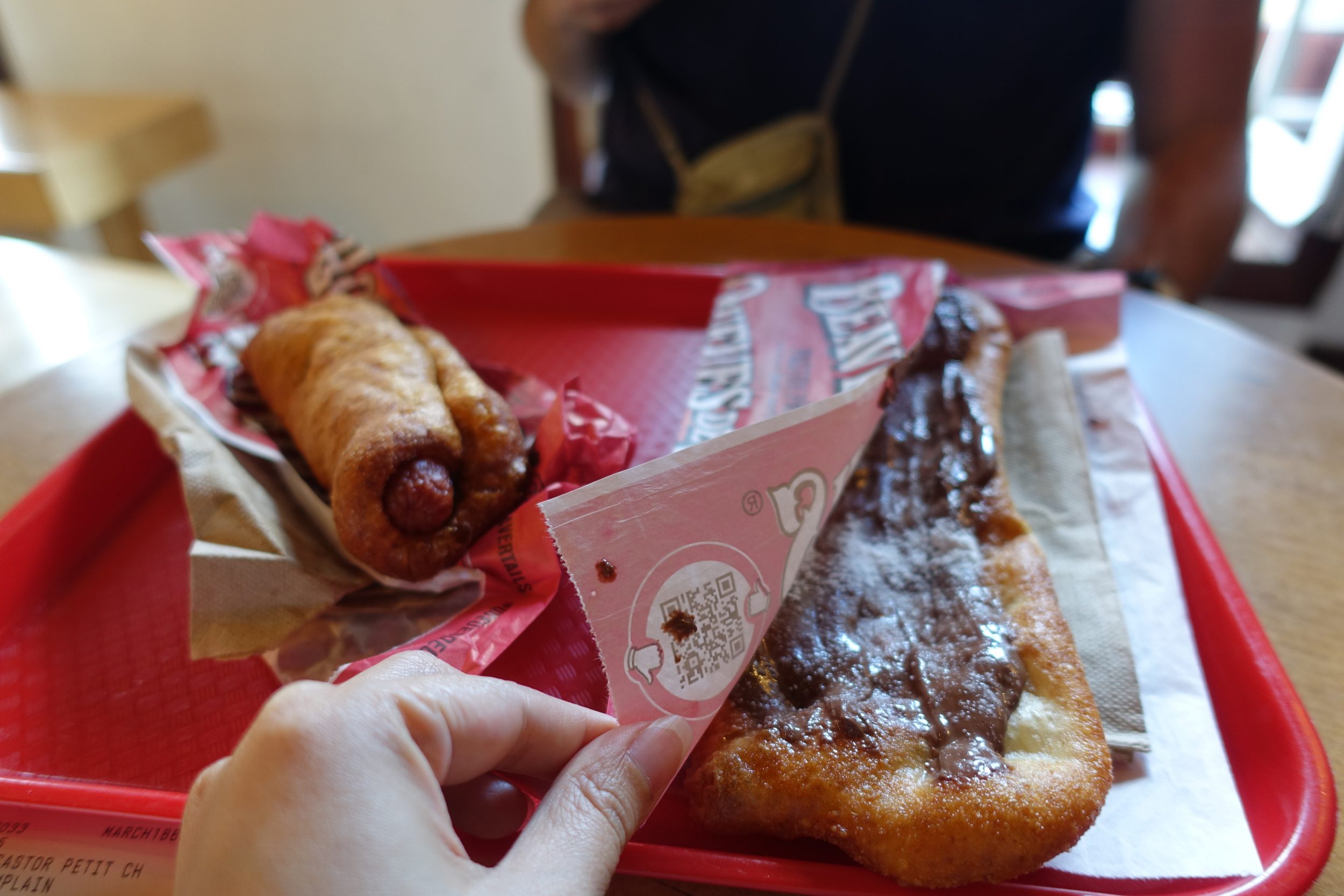 Il negozio proprio di fronte a questa strada, chiamato BeaverTails, vende una specie di churros al cioccolato super coinvolgente + un hot dog che è anche molto buono.
