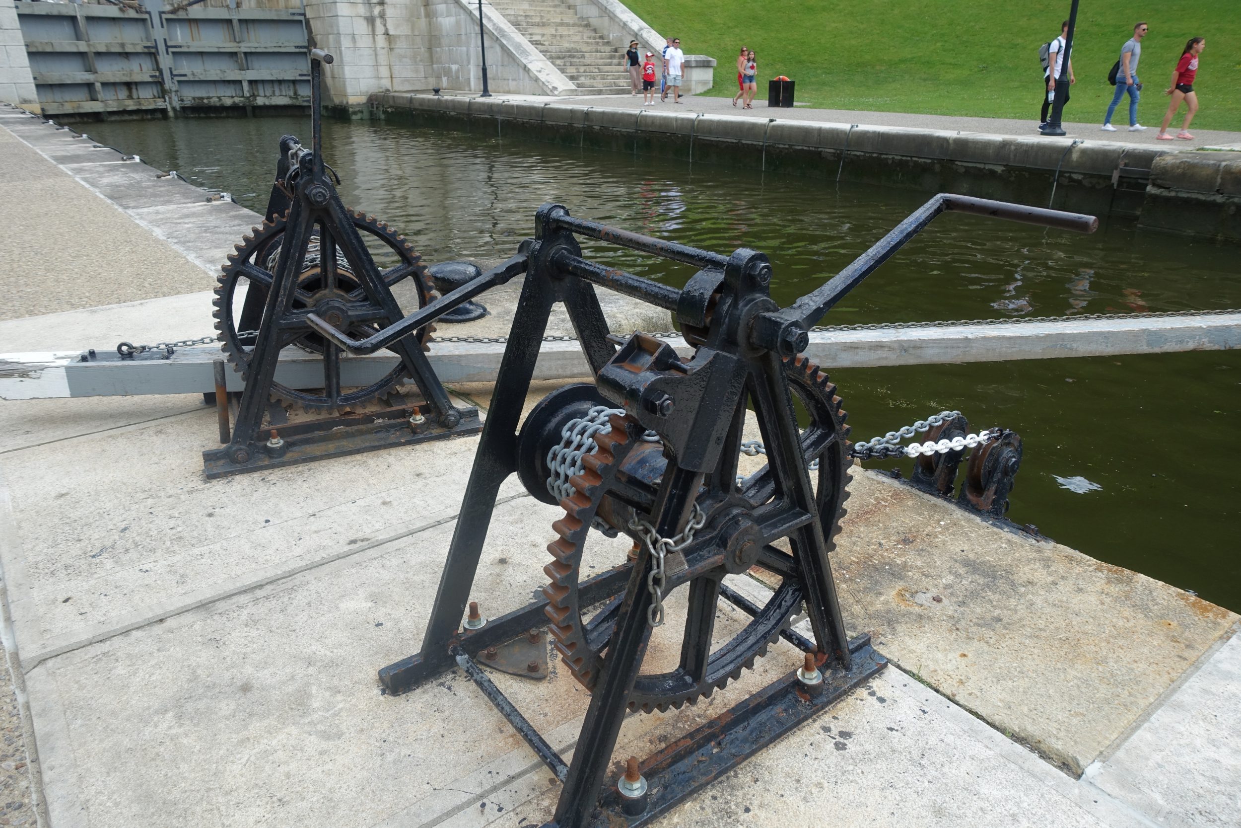 Abbiamo la fortuna di vedere una piccola barca passare attraverso le chiuse e ci rendiamo conto che la chiusura e l’apertura dei cancelli avviene automaticamente ma hanno conservato i joystick del tempo.