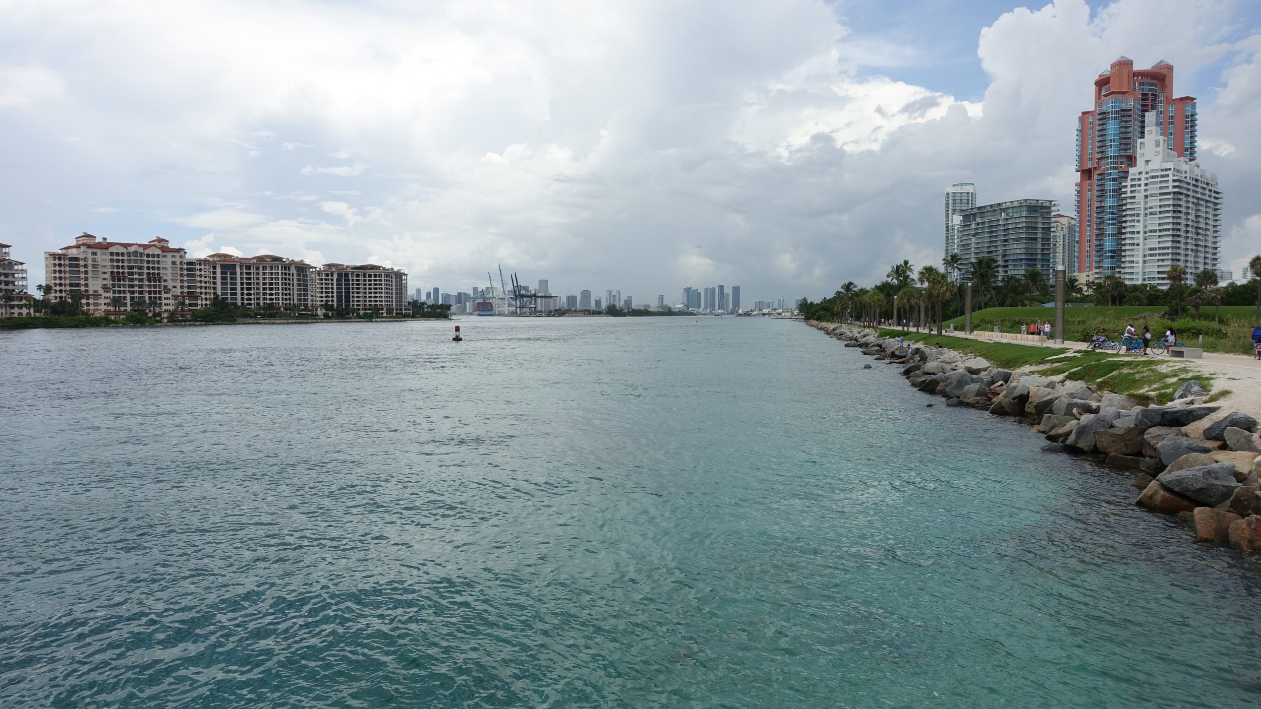 Prendiamo una CityBike (JB ha spiegato questo sistema equivalente al Velib qui) per arrivare al South Pointe Park Pier, probabilmente il miglior posto per nuotare a Miami Beach. Contrariamente ad altri posti, l’acqua è quasi senza alghe, la sabbia è bianca e fine; è molto piacevole.