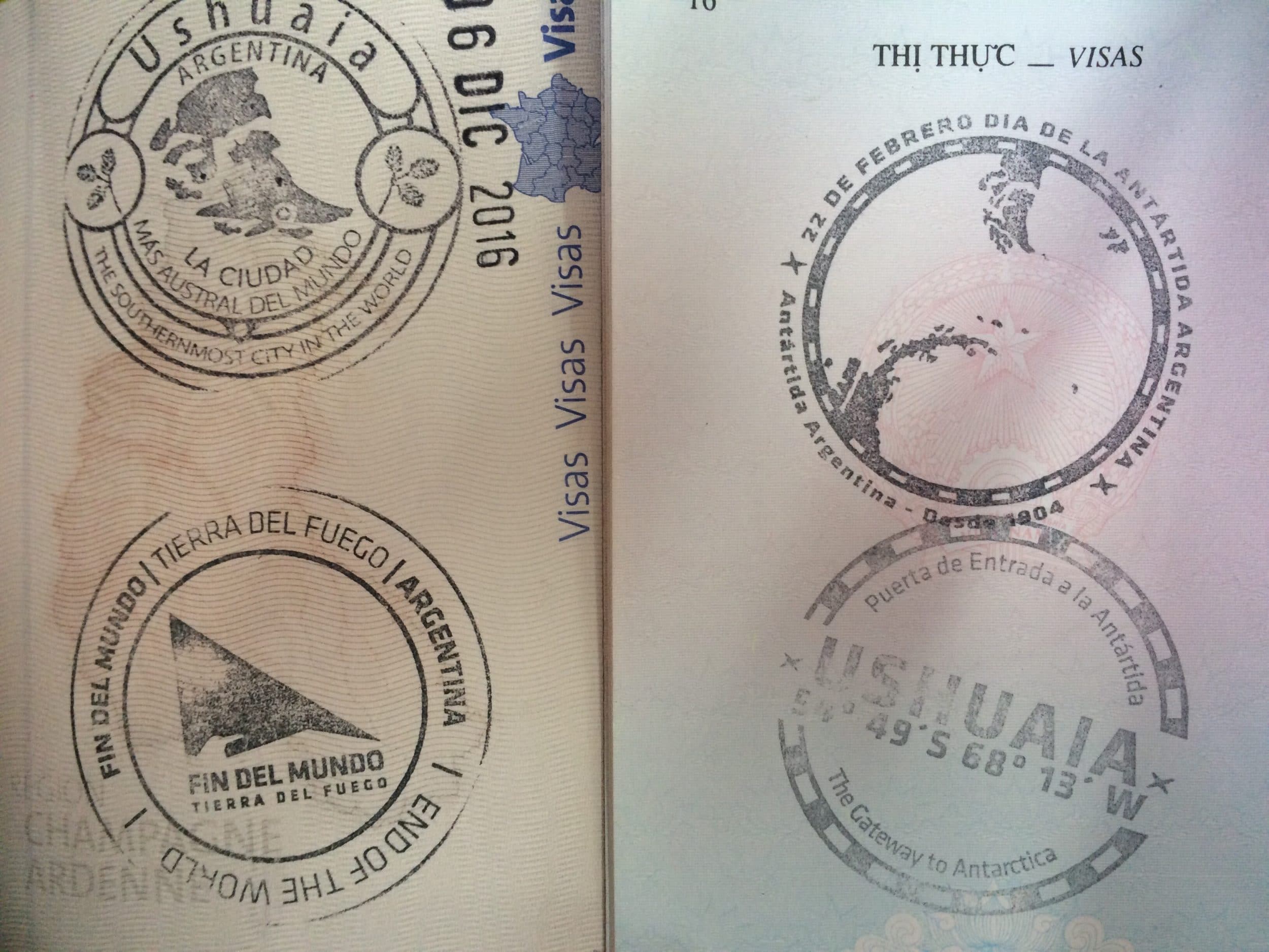 Il vantaggio quando hai la doppia nazionalità è che hai 2 passaporti, e il doppio dei posti per i timbri di Ushuaia hihi