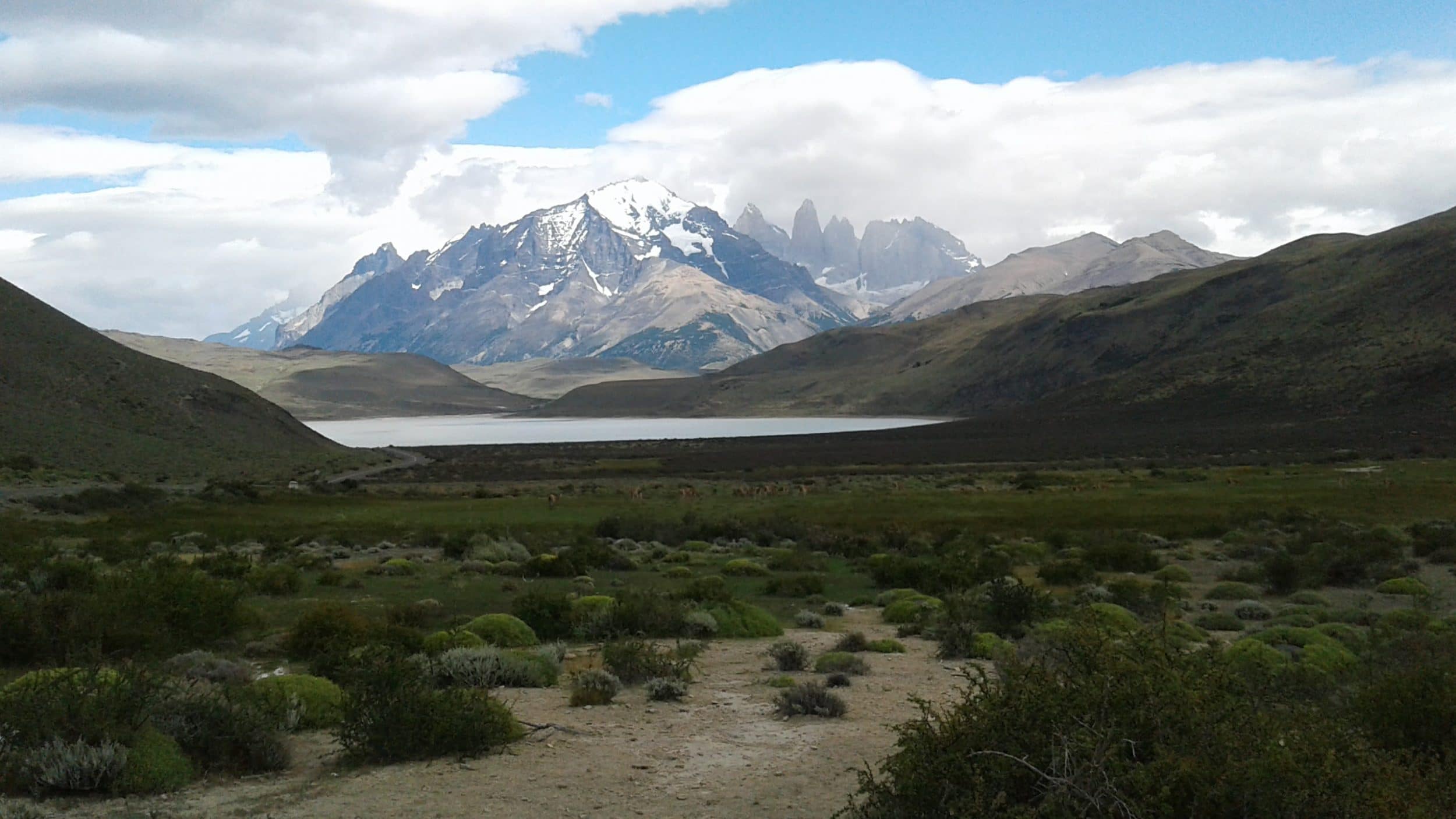 Il tempo è favorevole anche se un vento gelido ci segue da quando abbiamo attraversato la frontiera cilena. Siamo molto fortunati, ci dice la nostra guida, a vedere così chiaramente le 3 cime delle Torres del Paine.