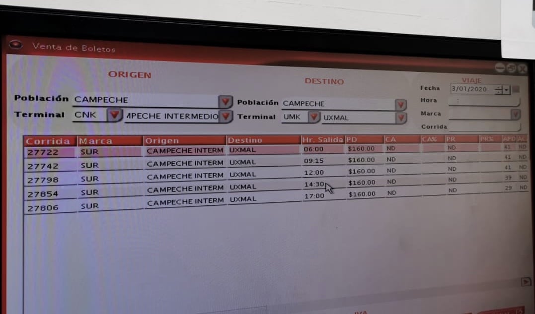 Orario del bus di seconda classe da Campeche a Uxmal (Messico)