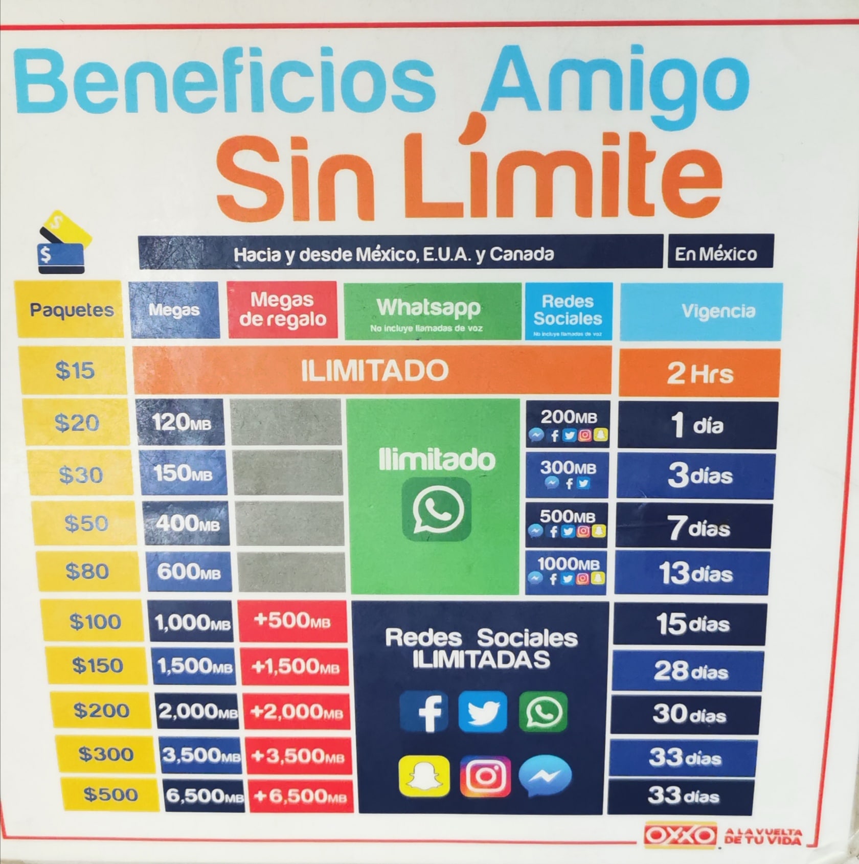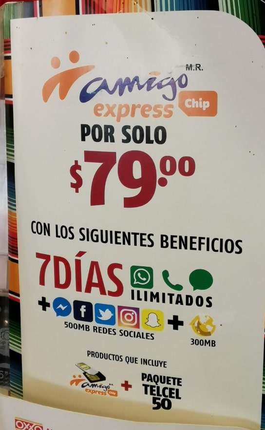 È possibile acquistare una carta SIM Amigo Express per 79 MXN e ottenere 7 giorni di :