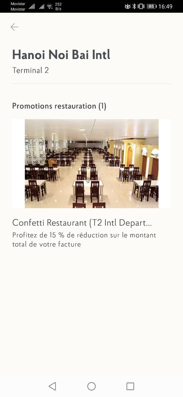 Infine, puoi vedere le offerte disponibili come questo ristorante all’aeroporto di Hanoi dove puoi ottenere il 15% di sconto.