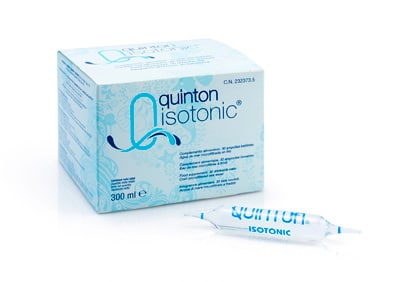Per far sì che l’acqua di mare prelevata dal mare assomigli effettivamente al plasma sanguigno (circa 33g/L di sale nell’acqua di mare contro 9g/L nel sangue), deve essere mescolata con acqua di sorgente e ci sono soluzioni già pronte vendute sotto forma di ampolle: 71% di acqua dolce, 29% di acqua di mare. Questo è il Quinton isotonic 30 fiale da 10ml. La versione Quinton ipertonico che contiene il 100% di acqua di mare, è ovviamente molto più salato ma fornisce una maggiore spinta energetica. Puoi trovarli facilmente in farmacia o online(qui per esempio).