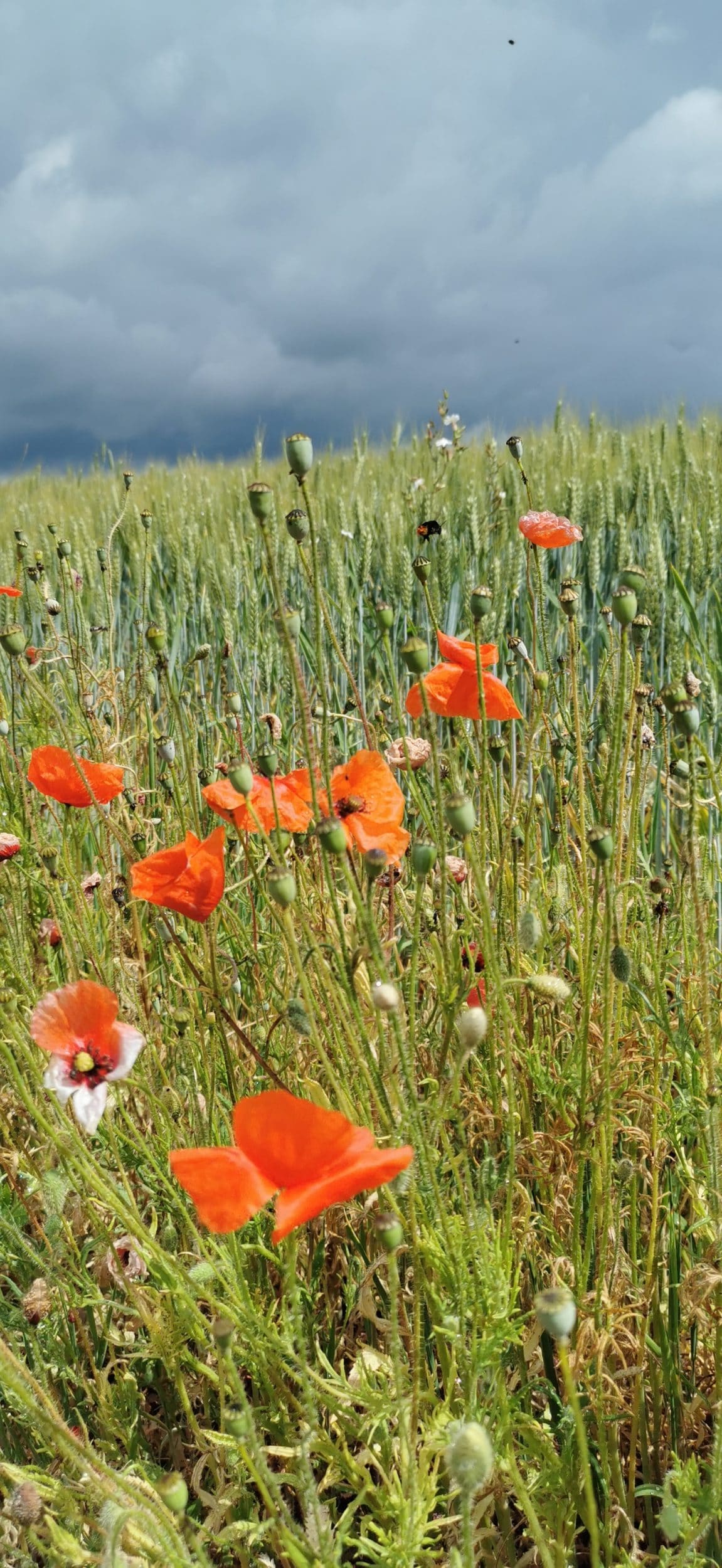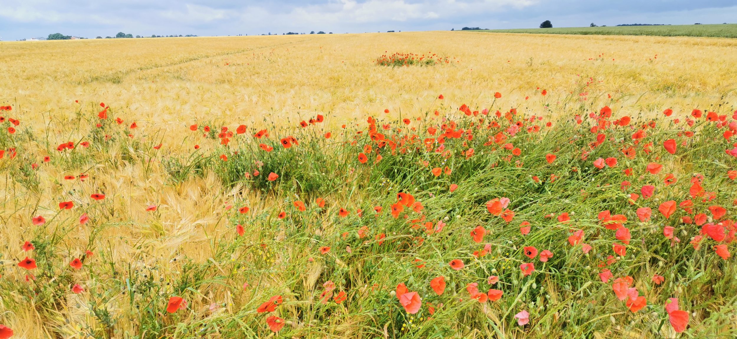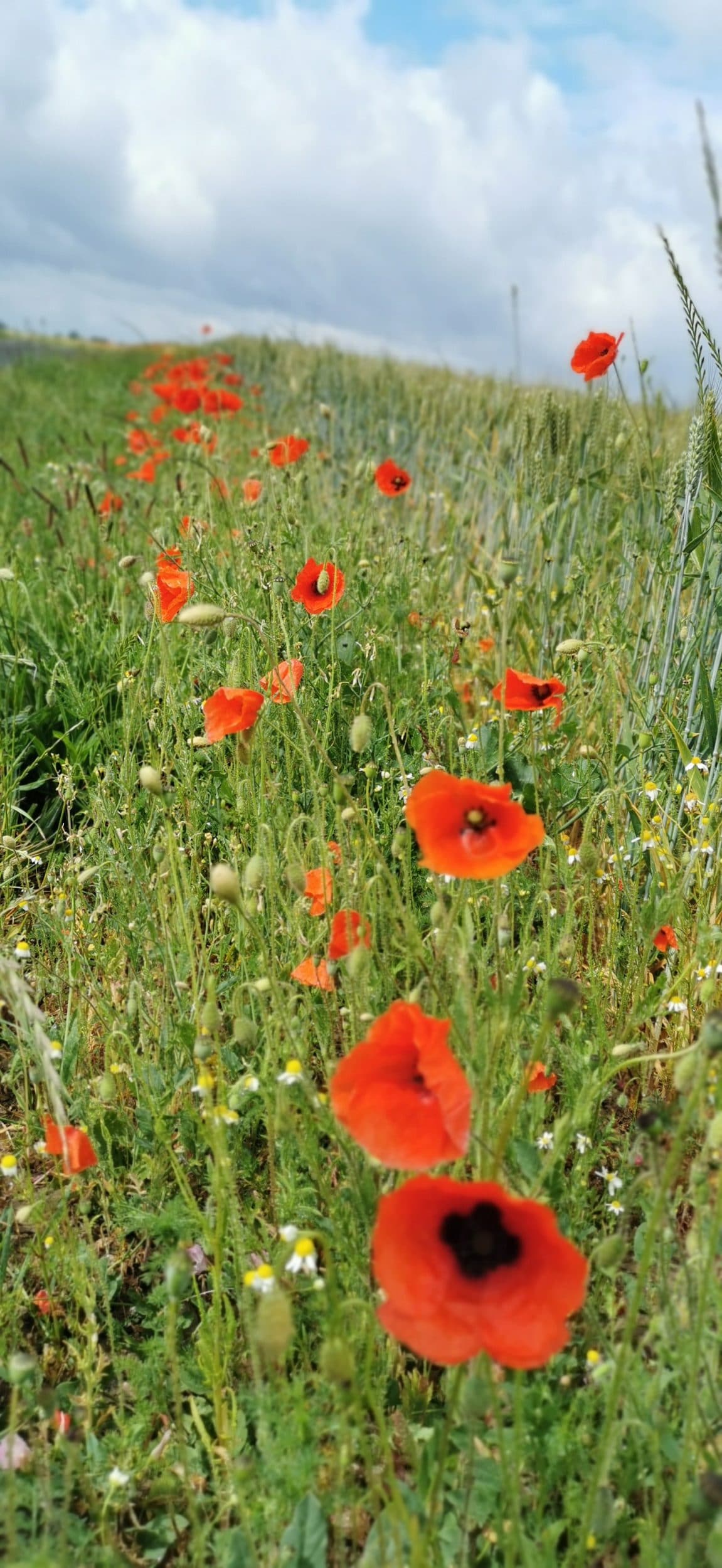 E poi, un po’ più in là, sul bordo di un campo di grano, i papaveri sono altrettanto numerosi e molto belli.