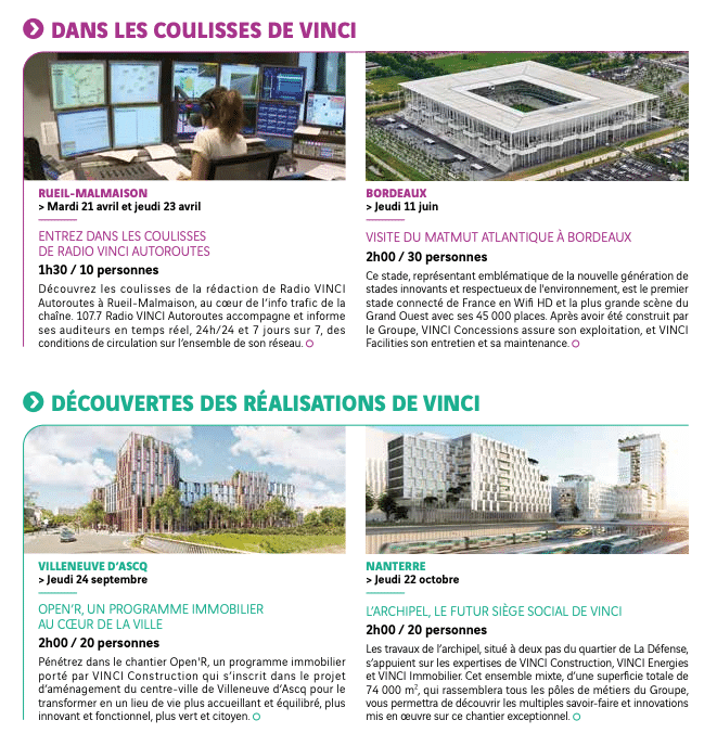 Vinci è uno dei principali attori dell’industria delle costruzioni in Francia, e come tale offre ai suoi azionisti l’opportunità di visitare alcune delle realizzazioni dell’azienda.