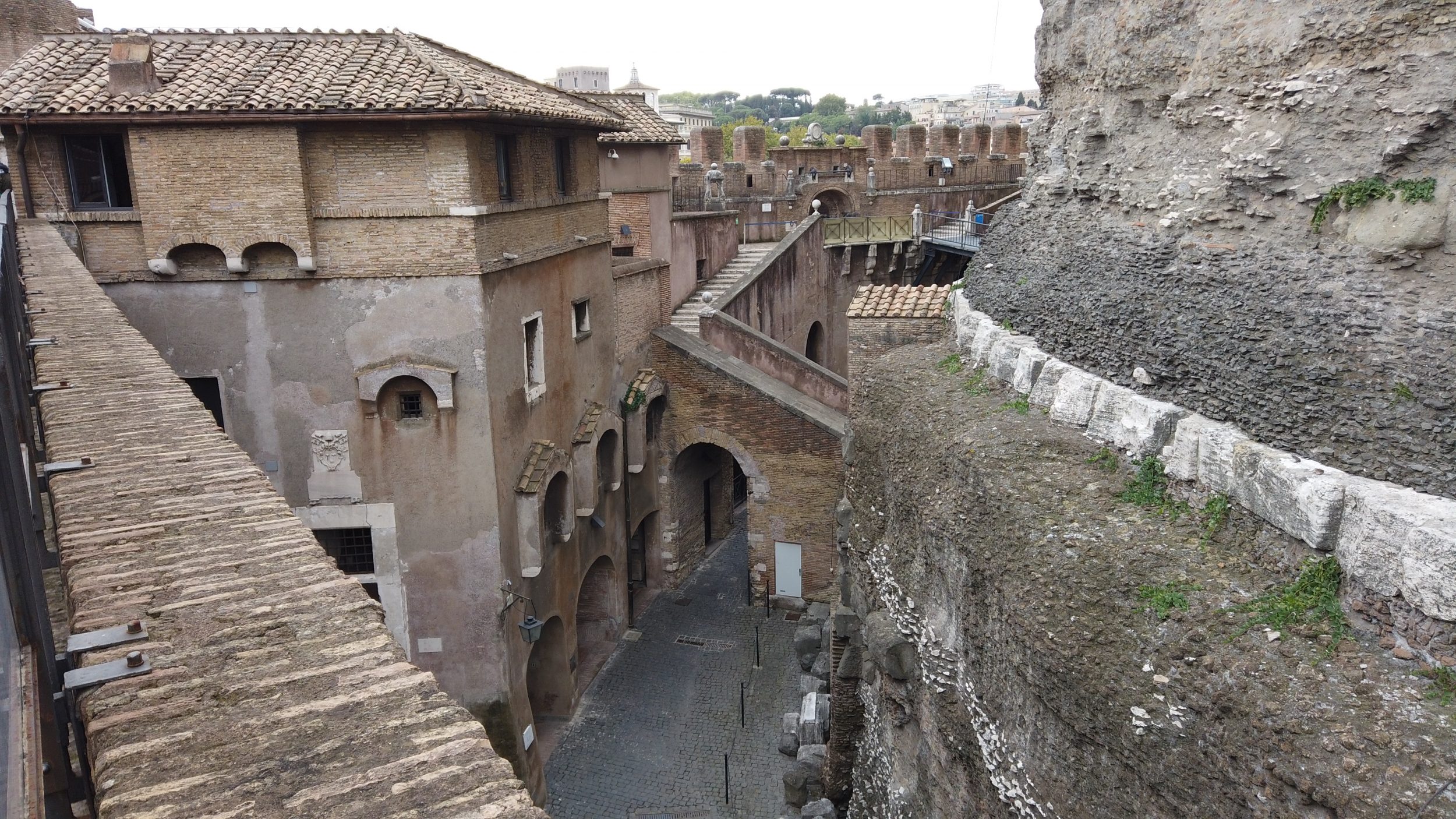 Il castello si trova sul vecchio mausoleo di Adriano. Inoltre, possiamo ancora vedere all’interno il luogo dove doveva trovarsi la tomba dell’imperatore. L’edificio fu presto utilizzato per scopi militari, poi trasformato in una prigione politica, poi in una fortezza per difendere il Vaticano, ci sono ex appartamenti dei papi qua e là. Il che rende la struttura abbastanza difficile da capire.