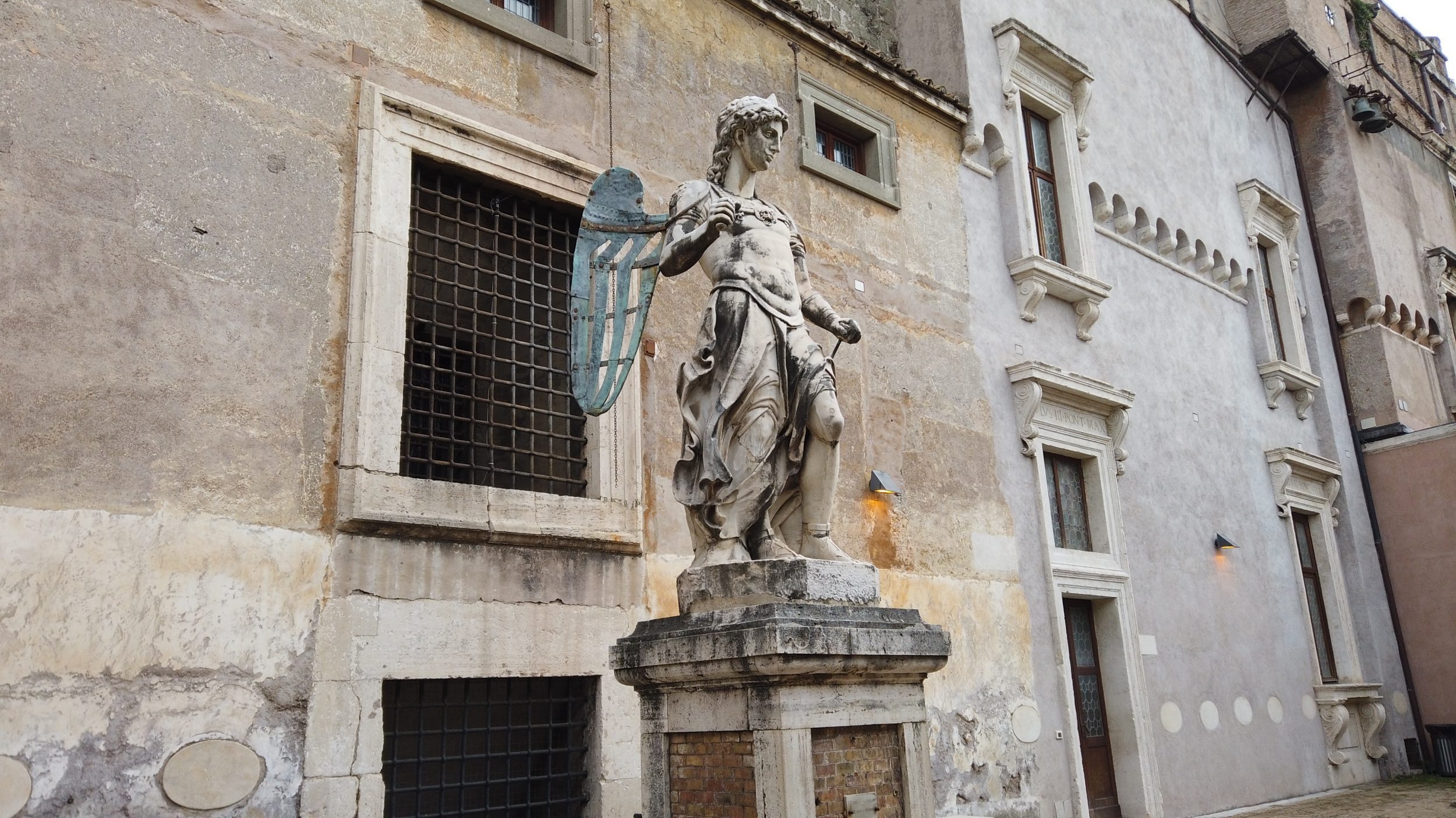 La statua di marmo dell’Arcangelo Michele fu presto trovata in un cortile vicino agli appartamenti degli ex papi. Questa statua era in cima all’edificio, ma è stata sostituita da un’altra, che vedremo più tardi