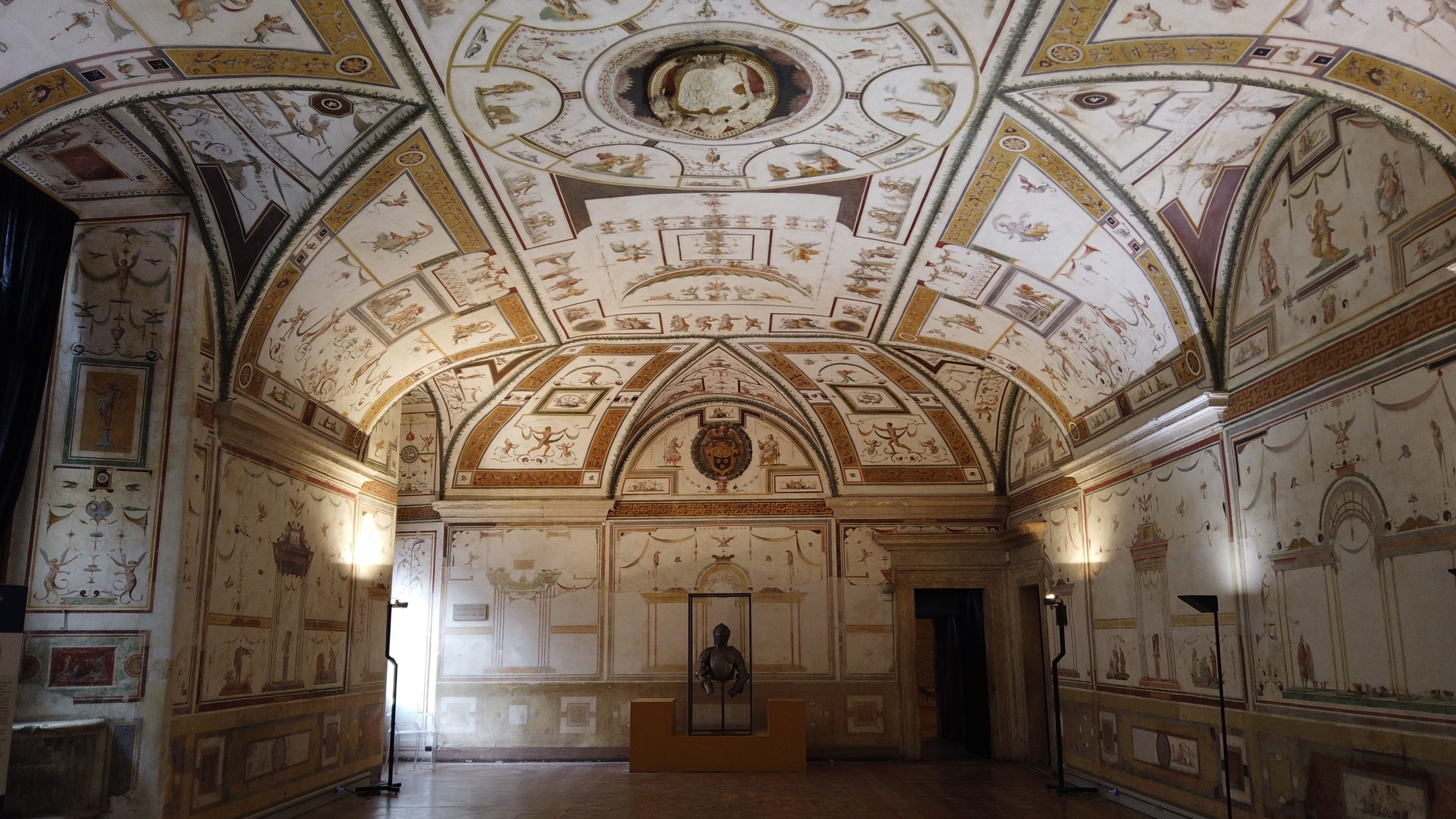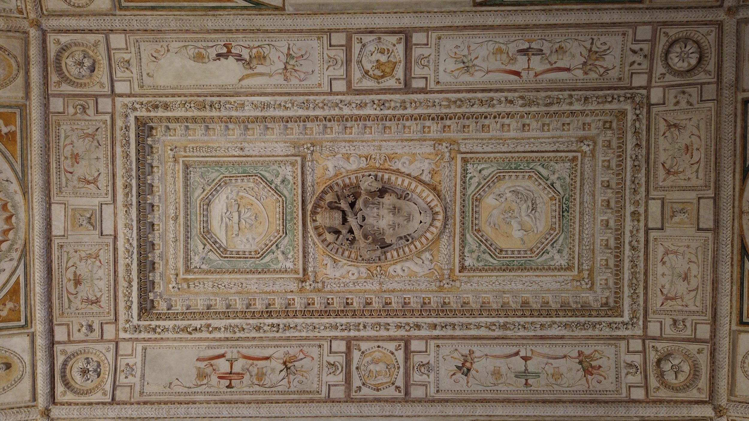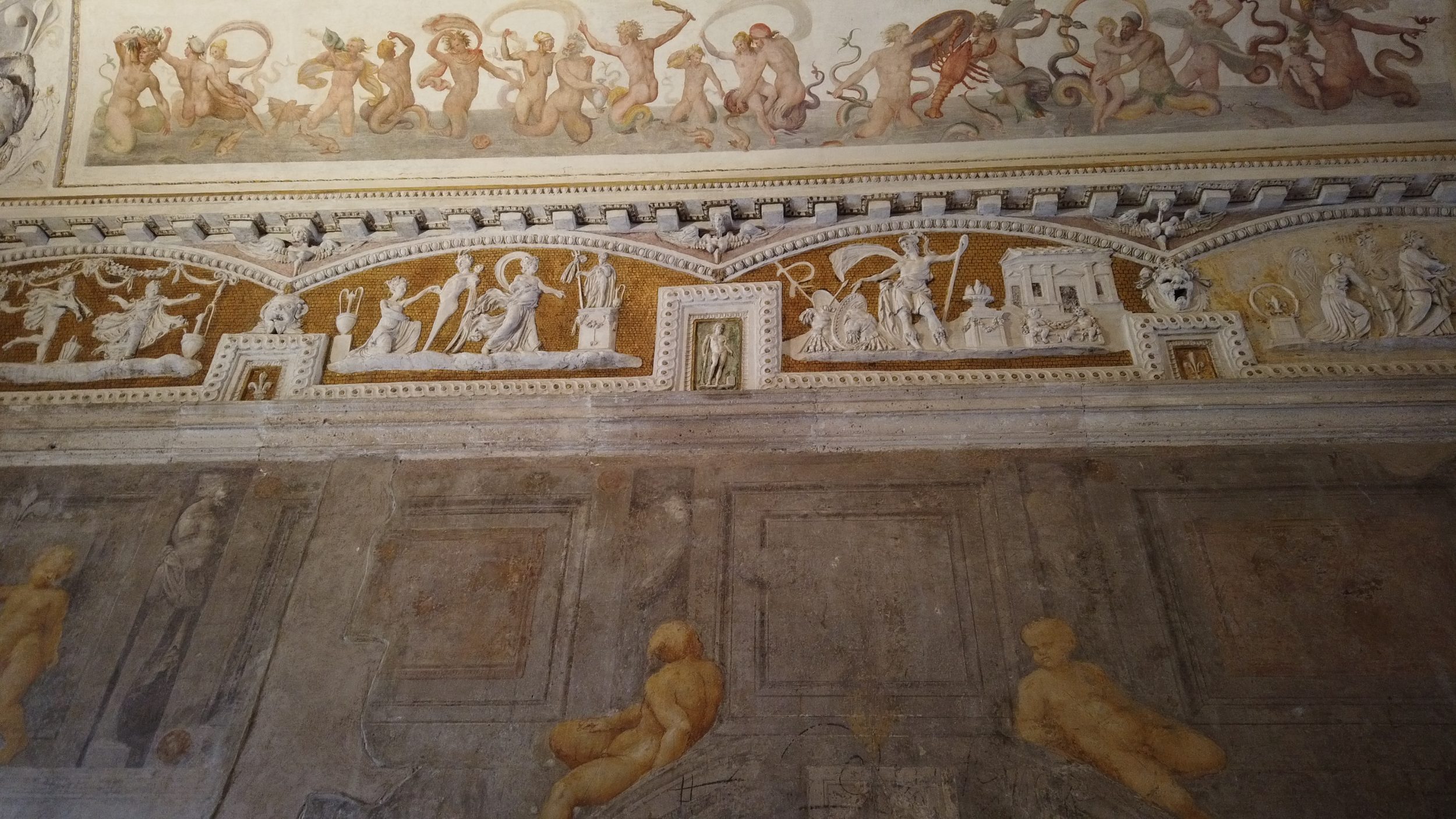 Questa stanza è una vecchia biblioteca, se non mi sbaglio. Mi meraviglio sempre dei soffitti italiani ultra-caricati e delle pareti ultra-decorate.