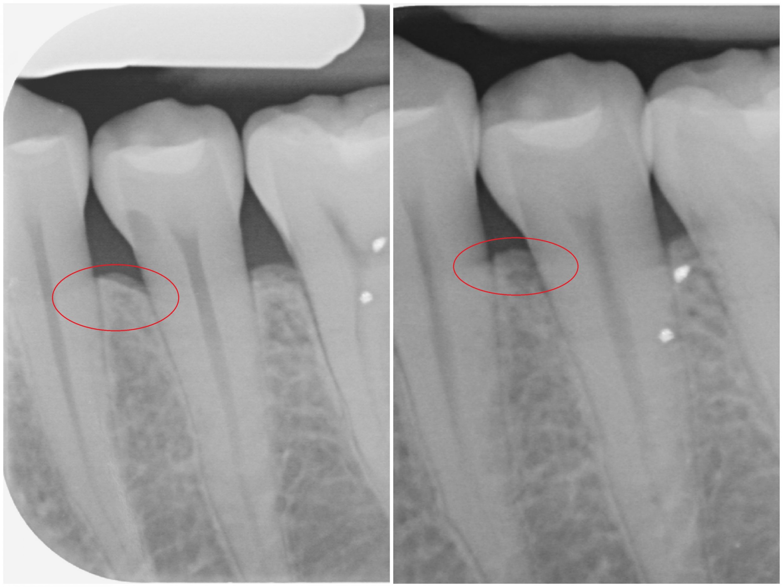 Ora che le mie gengive e i miei denti sono ultra puliti, posso tornare per una detartrasi ogni 6 mesi. Allo stesso tempo, stavo bevendo l’acqua Quinton e sembra rigenerare il mio osso, non so come spiegarlo, ma ecco le radiografie prima/dopo: