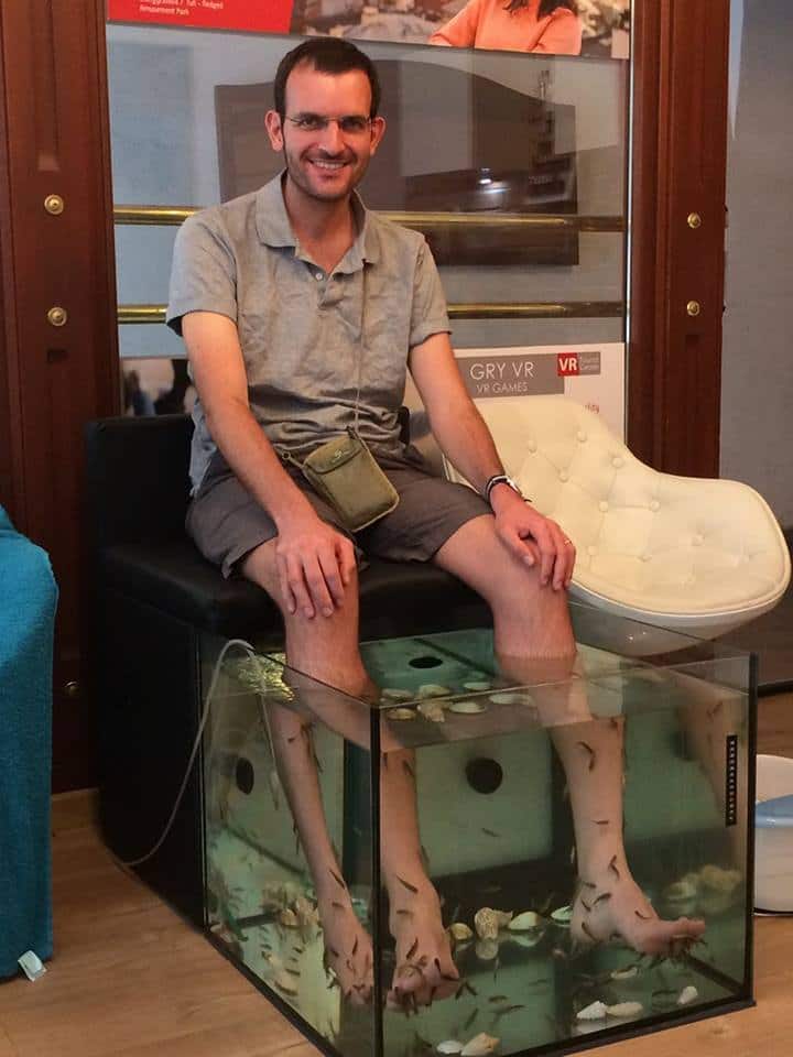 È stato a Bangkok, in Thailandia, che ho sentito parlare per la prima volta della pedicure di pesce, quando ho visto dei turisti con i piedi in un acquario che si cibavano di pesce. Sorpresi e divertiti, abbiamo preferito un massaggio molto più classico.