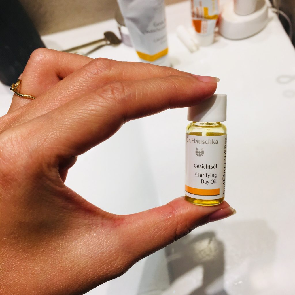 - Stai usando tutta la routine del Dr. Hauschka. I prodotti sono stati formulati per lavorare in modo sinergico. Devi usare almeno la crema detergente Hauschka, l’olio e la crema da giorno allo stesso tempo perché funzioni