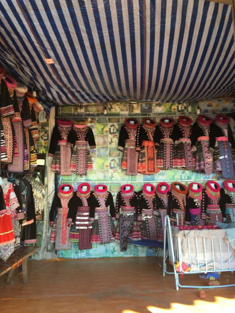 Da qui, la strada è più stretta e irregolare. Non si sale più, ma si scende senza sosta. Arriviamo al villaggio H’mong, che non sembra un villaggio di minoranza etnica ma un “mercato di Chiang Mai” in montagna. Le case sono meno tradizionali di quanto pensassi