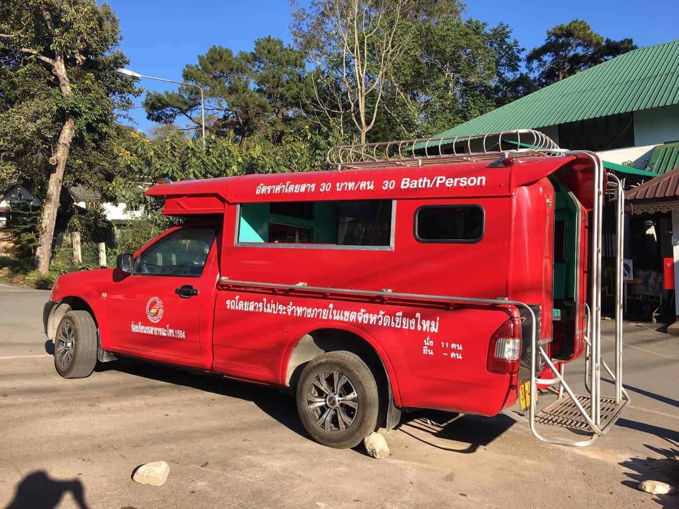 Oppure si può noleggiare un camion rosso da condividere (songthaew). Chiedi all’autista se sta andando a Doi Suthep. Se è così, dovrai pagare 30 baht/persona e ti lascerà davanti al tempio Wat Phratha Doi Suthep