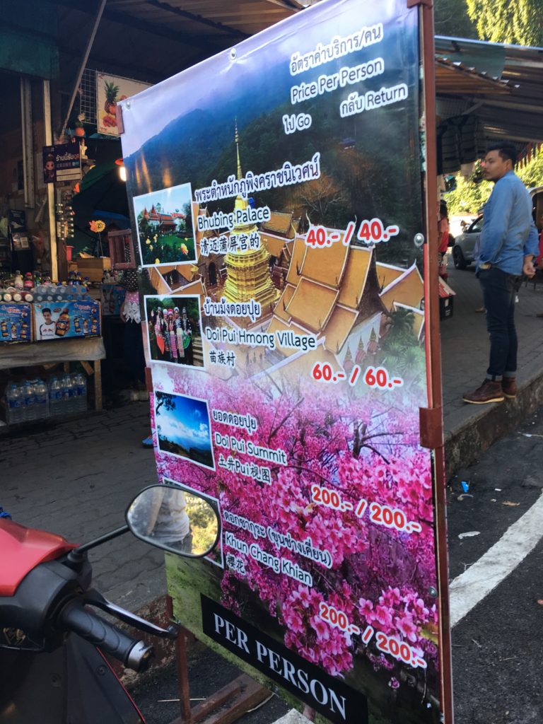 Bello, niente di più. Avremmo potuto tornare sui nostri passi e salire più in alto per raggiungere Doi Pui Summit (in cima alla montagna) e Khun Chang Khian (per vedere i ciliegi in fiore) – ma siamo troppo pigri. Comunque, abbiamo avuto accesso a diverse vedette e abbiamo visto i ciliegi in fiore
